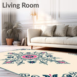 Flatwoven High Traffic Area Rug, Artisan Boho Floral Medallion Motif with Whimsical Vine Accents, Non Slip, Stain Resistant, Washable Area Rugs for Living Room, Bedroom (Beige) Overview:
