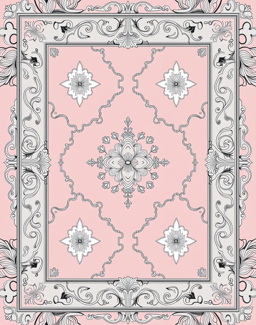 Artisan Floral with Ornate Scrollwork and Petal Embellishments (Pink)
