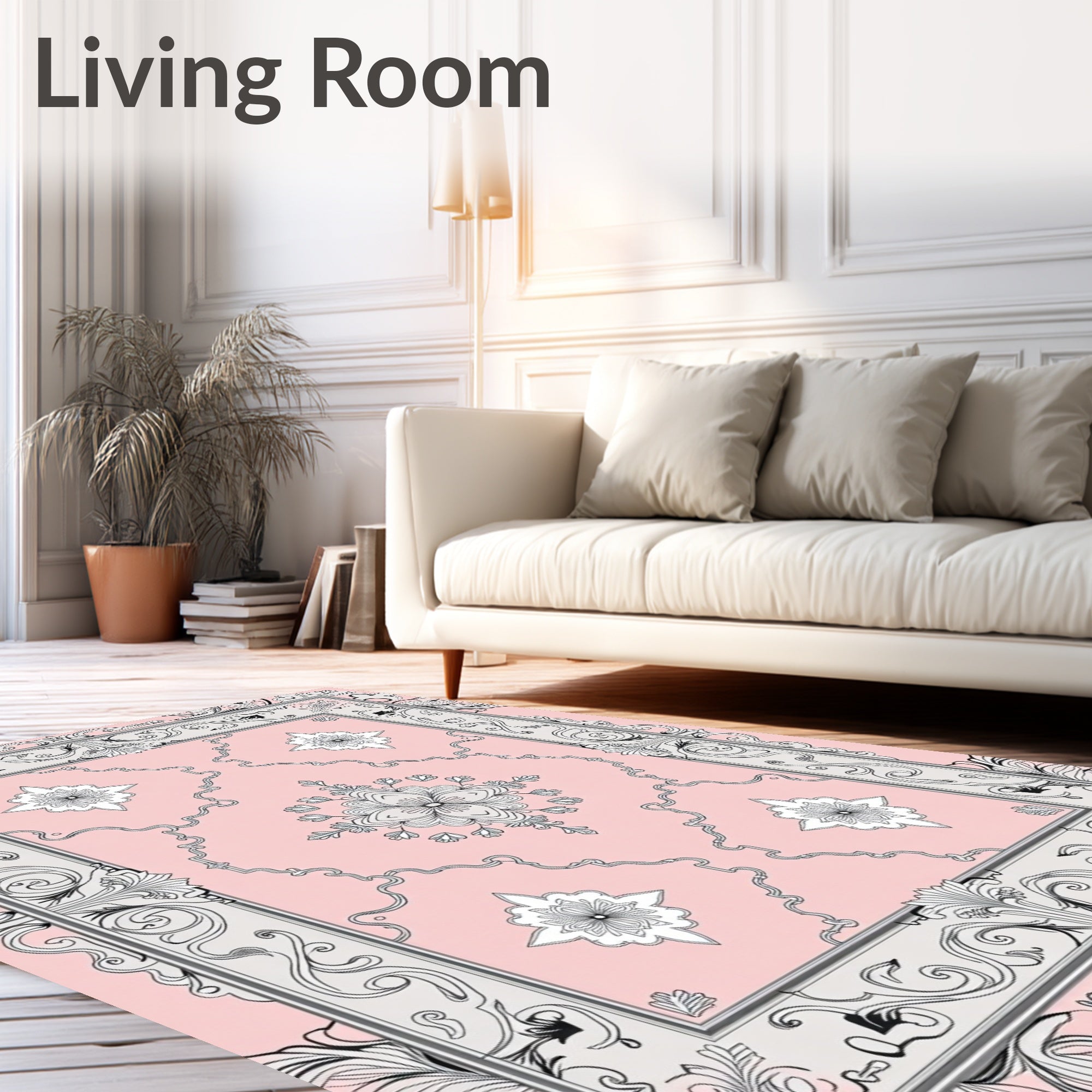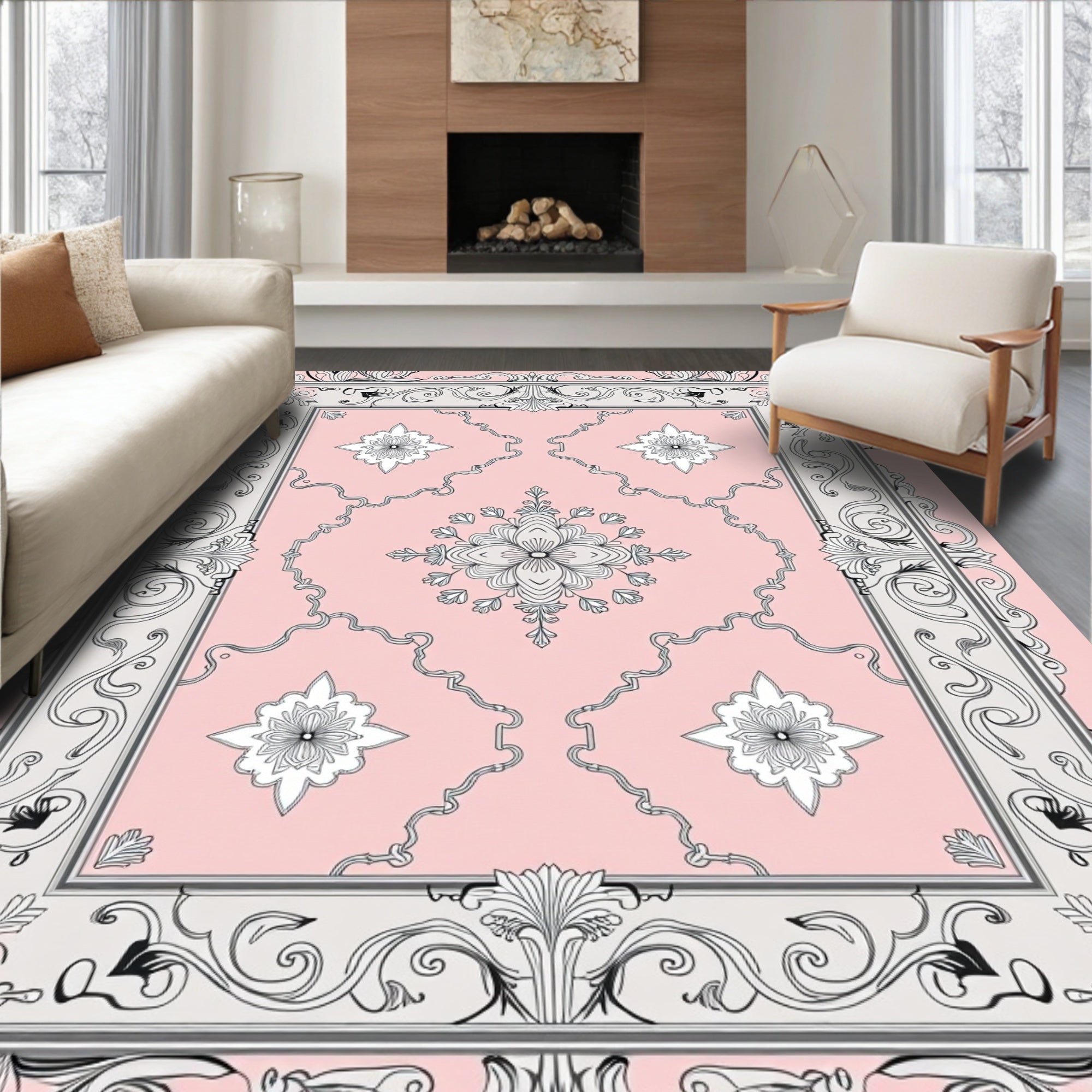 Flatwoven High Traffic Area Rug, Artisan Floral with Ornate Scrollwork and Petal Embellishments, Non Slip, Stain Resistant, Washable Area Rugs for Living Room, Bedroom (Pink) Overview: