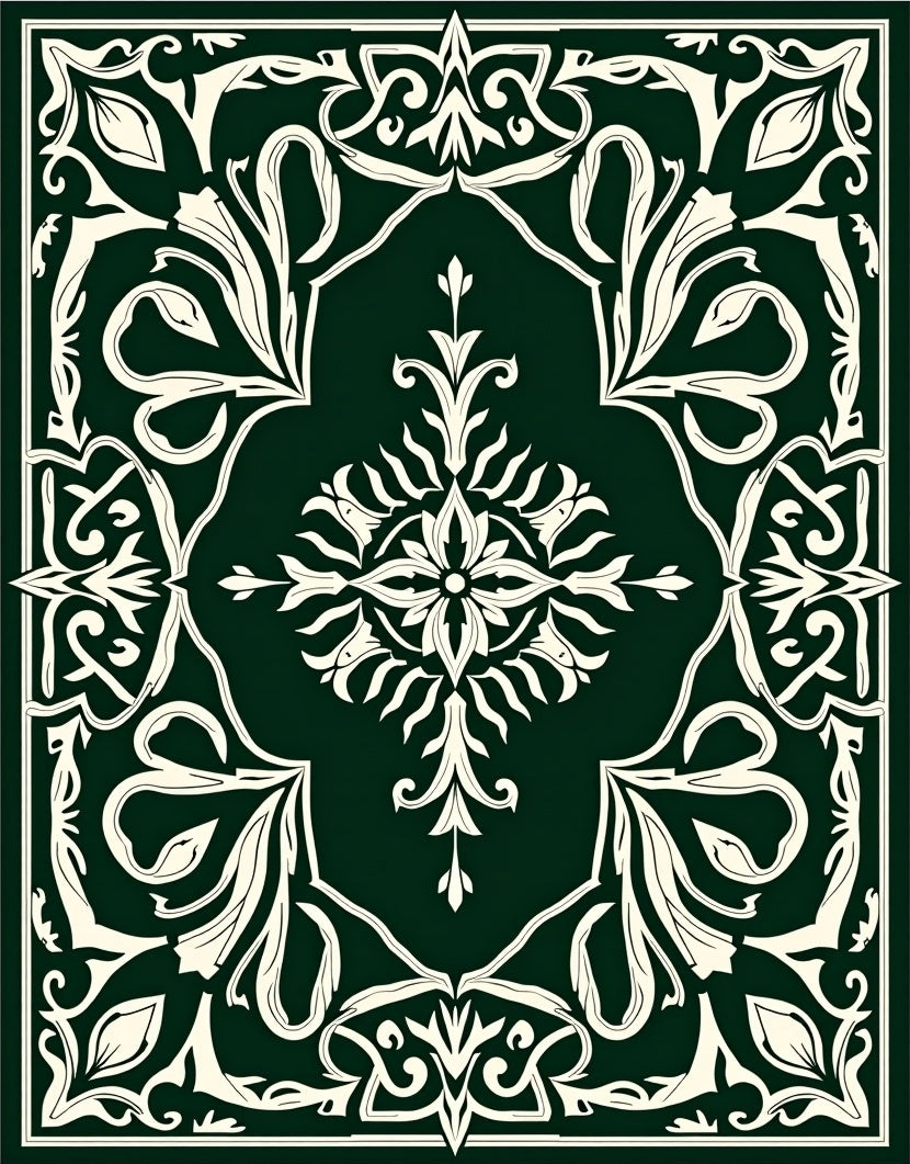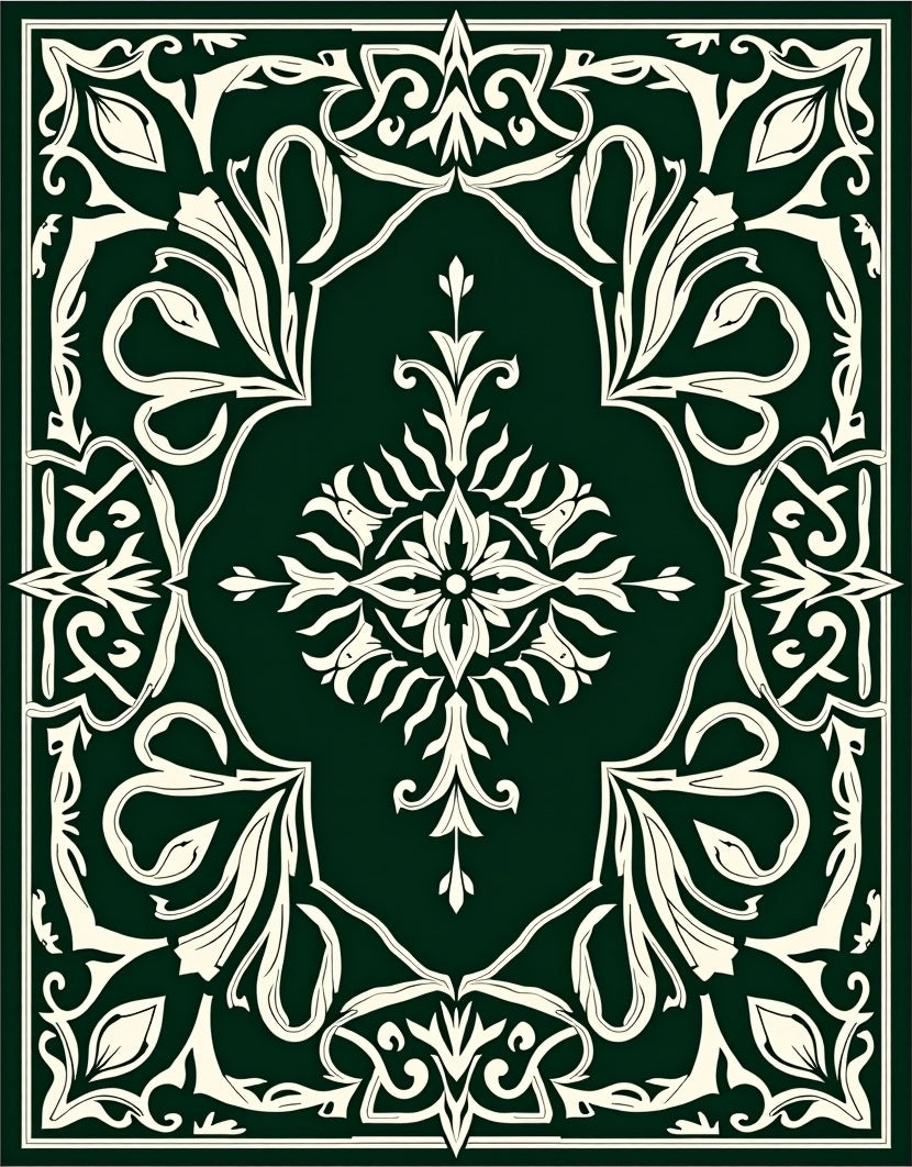 Artisan Inspired Damask Motif with Refined Leaf and Vine (Green)