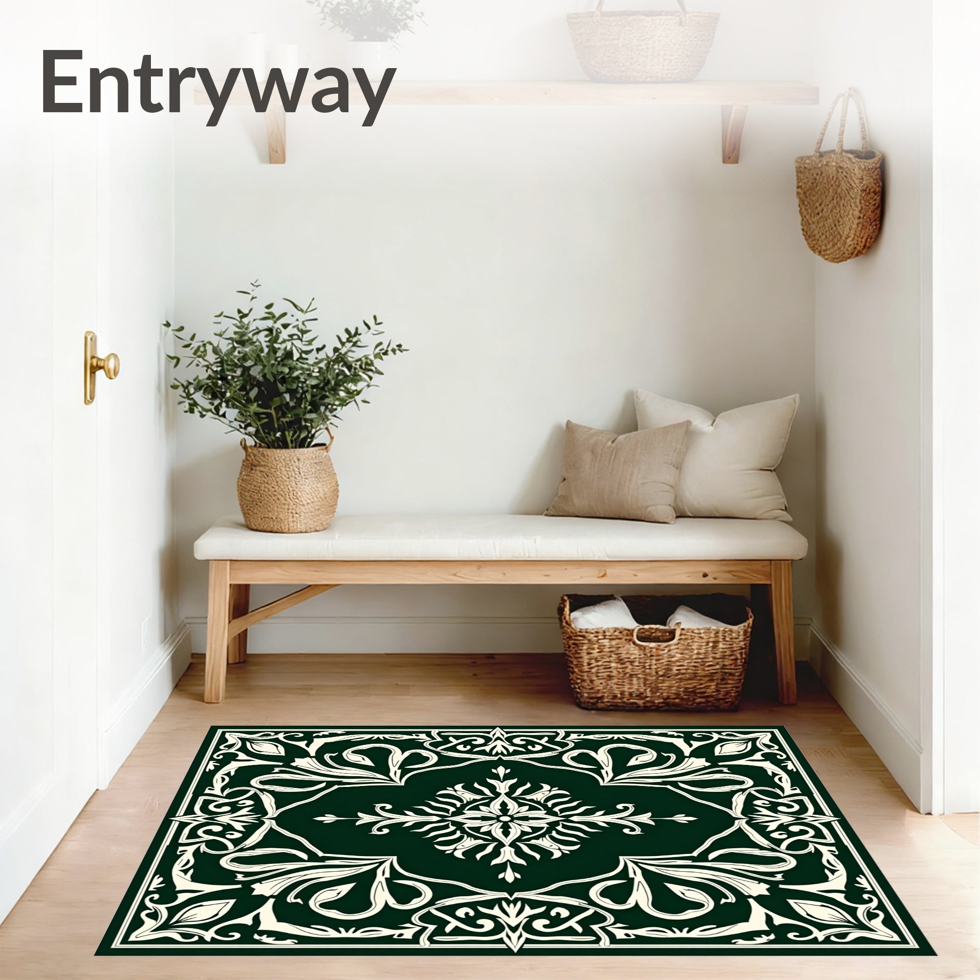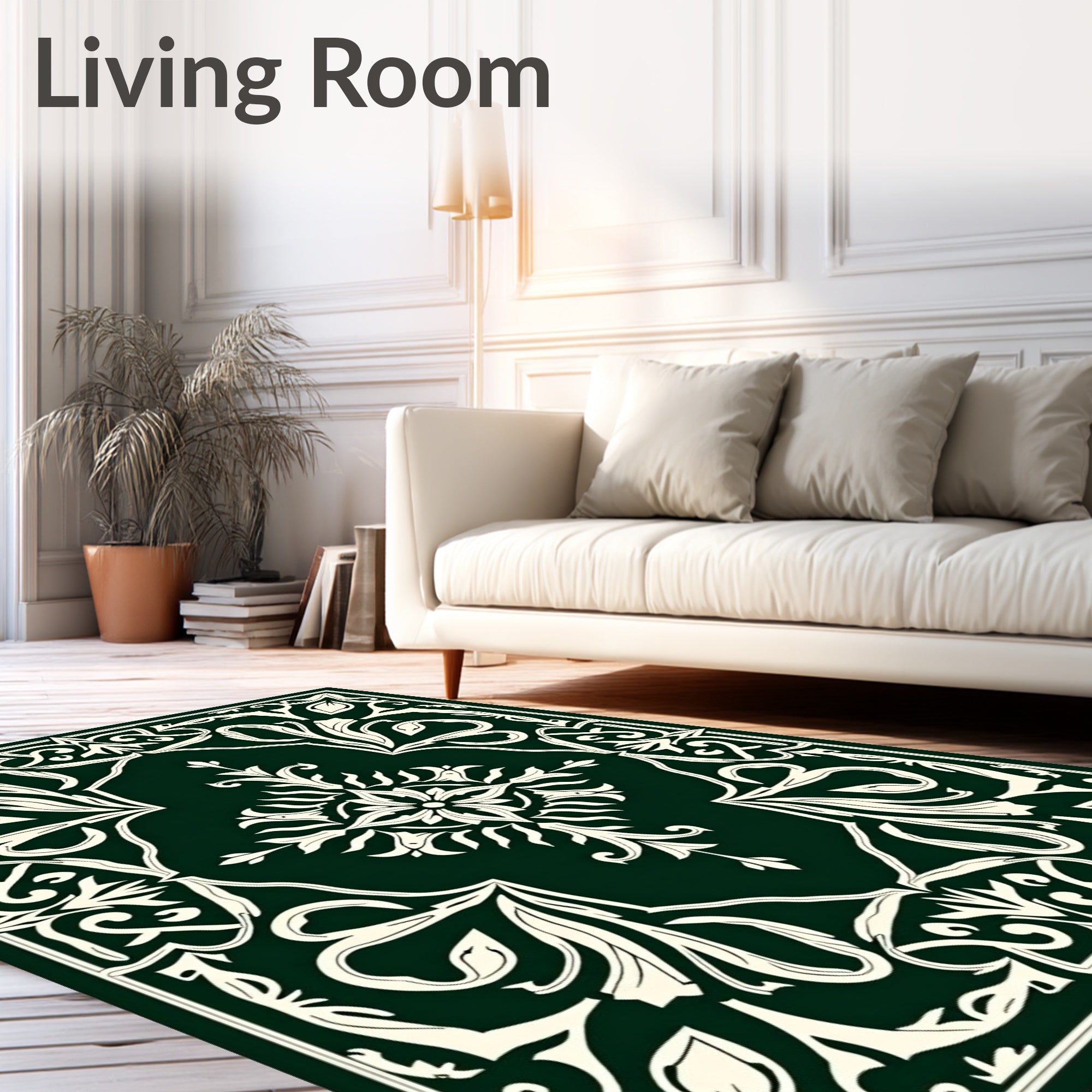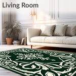 Flatwoven High Traffic Area Rug, Artisan Inspired Damask Motif with Refined Leaf and Vine, Non Slip, Stain Resistant, Washable Area Rugs for Living Room, Bedroom (Green) Overview: