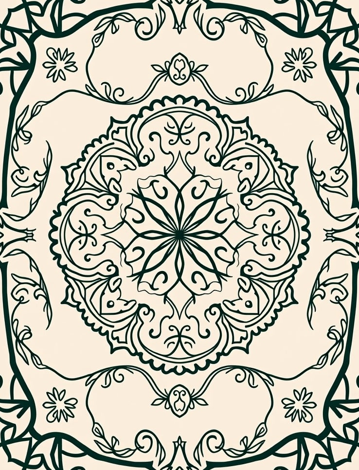 Artisan Lattice Enhanced by Ornamental Floral Scrollwork (Beige)