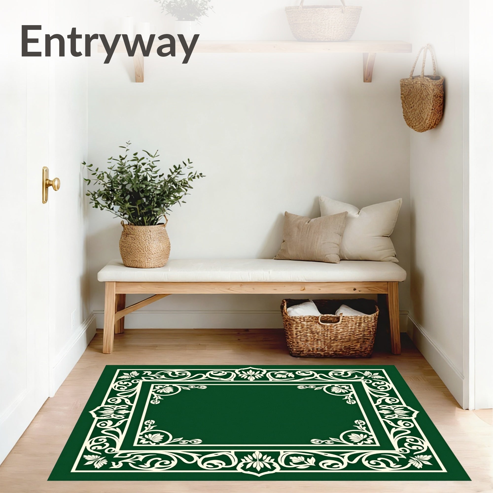 Flatwoven High Traffic Area Rug, Artisan Lattice Featuring Intertwined Foliage Scrollwork, Non Slip, Stain Resistant, Washable Area Rugs for Living Room, Bedroom (Green) Overview: