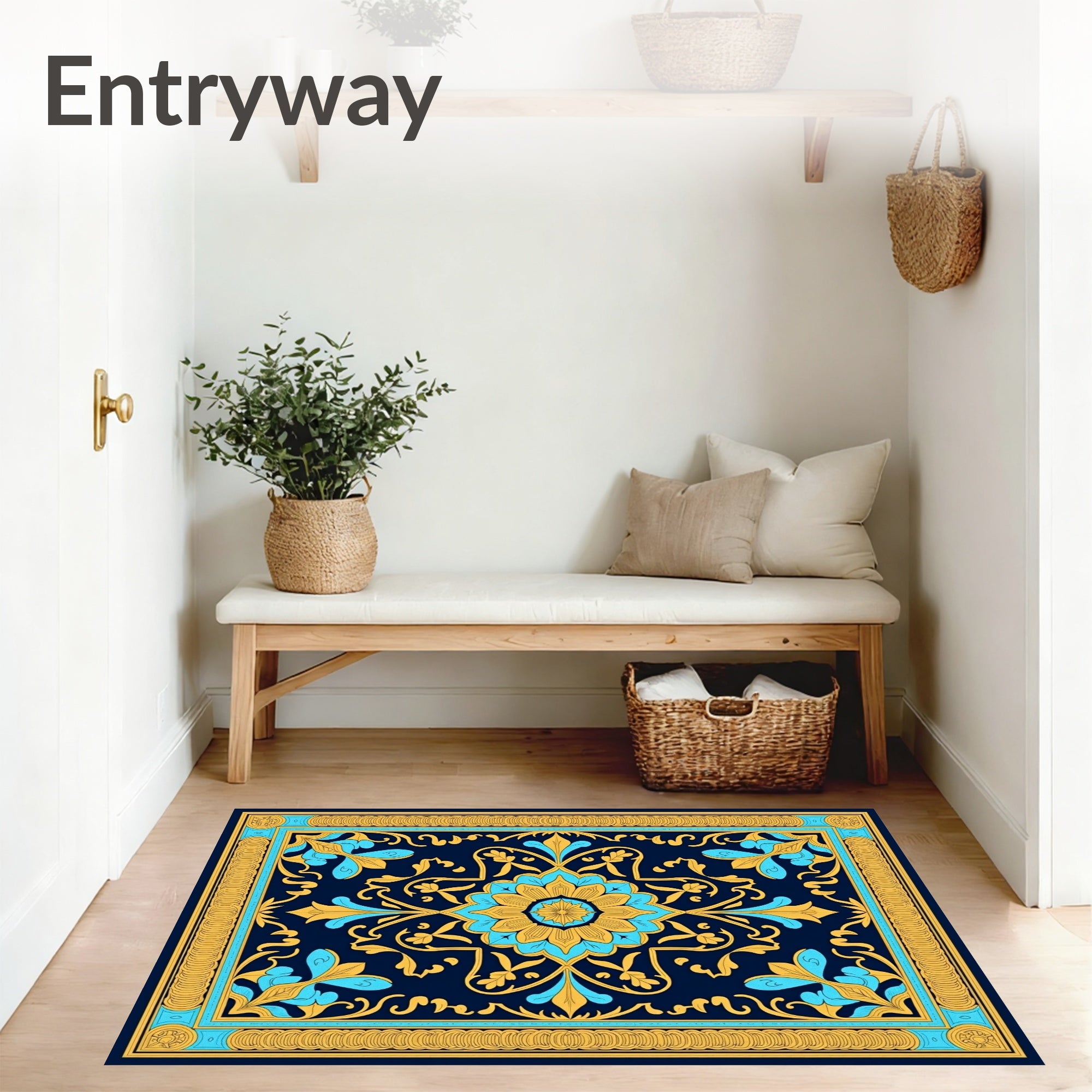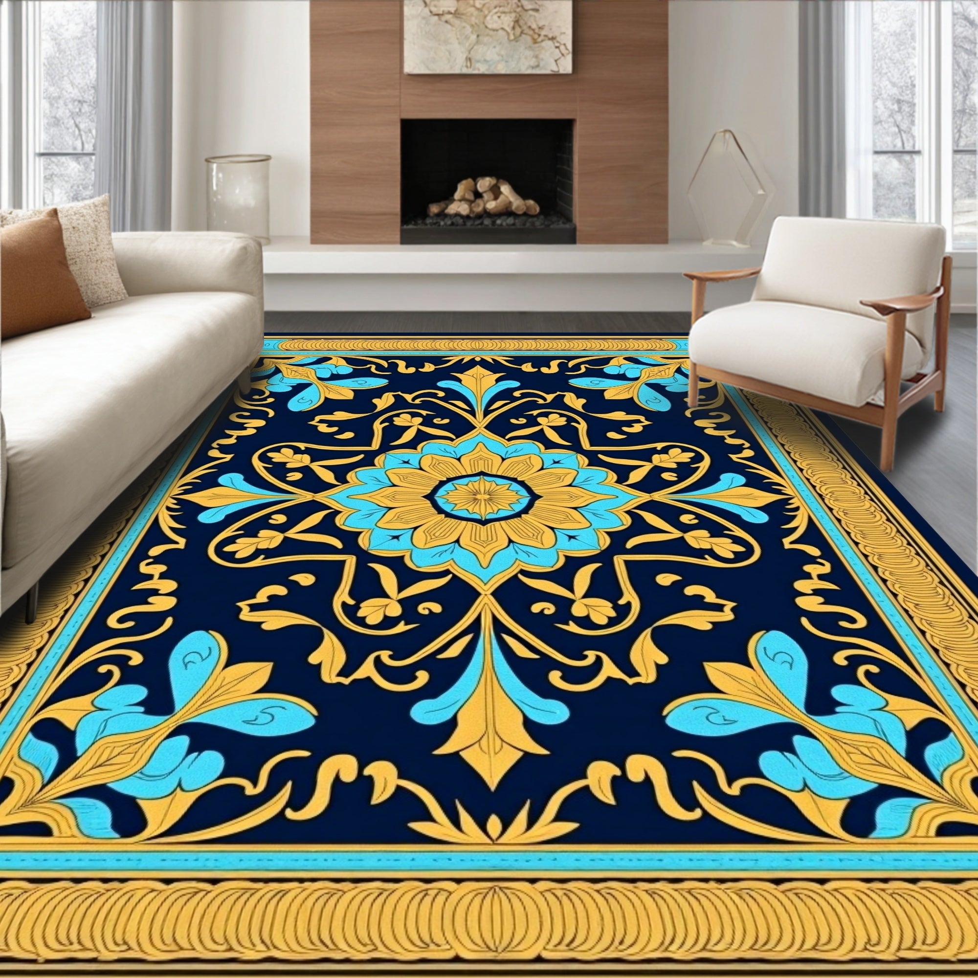 Flatwoven High Traffic Area Rug, Artisan Medallion with Stylized Floral, Non Slip, Stain Resistant, Washable Area Rugs for Living Room, Bedroom (Gold) Overview: