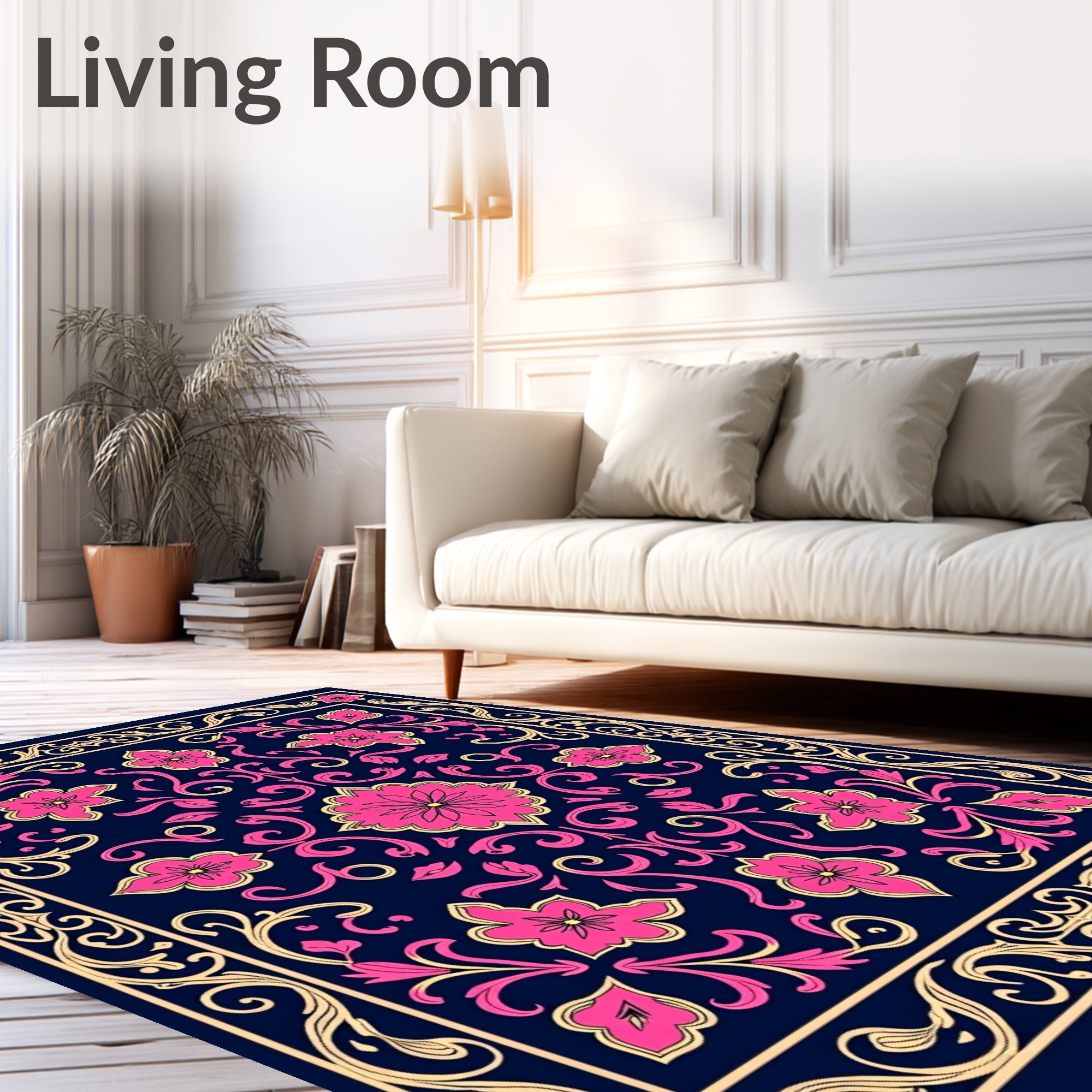 Flatwoven High Traffic Area Rug, Artisan Scrollwork Damask Vine with Ornate Petals and Foliage, Non Slip, Stain Resistant, Washable Area Rugs for Living Room, Bedroom (Pink) Overview: