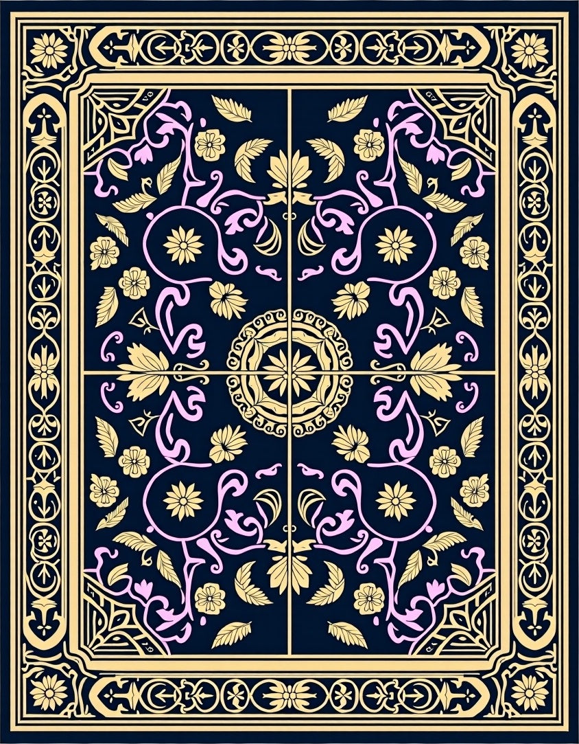 Artisan Scrollwork Mosaic with Classic Floral Emblems (Black)