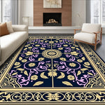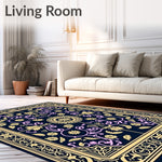Flatwoven High Traffic Area Rug, Artisan Scrollwork Mosaic with Classic Floral Emblems, Non Slip, Stain Resistant, Washable Area Rugs for Living Room, Bedroom (Black) Overview: