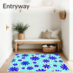Flatwoven High Traffic Area Rug, Artistic Floral Burst with Dynamic Swirl, Non Slip, Stain Resistant, Washable Area Rugs for Living Room, Bedroom (Blue) Overview: