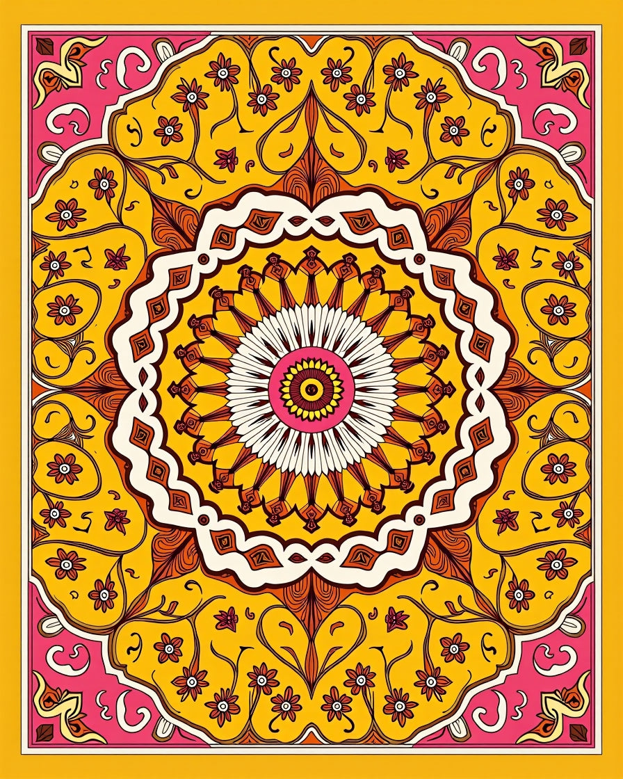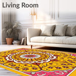 Flatwoven High Traffic Area Rug, Bohemian Floral Ornate Delicate Tapestry, Non Slip, Stain Resistant, Washable Area Rugs for Living Room, Bedroom (Yellow) Overview: