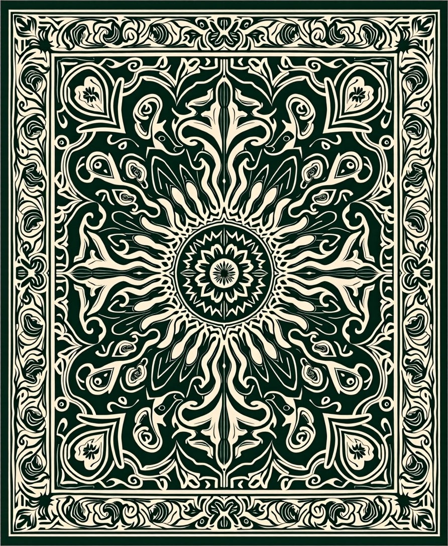 Boho Paisley with Ornamental Swirl Motifs (Green)