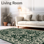 Flatwoven High Traffic Area Rug, Boho Paisley with Ornamental Swirl Motifs, Non Slip, Stain Resistant, Washable Area Rugs for Living Room, Bedroom (Green) Overview: