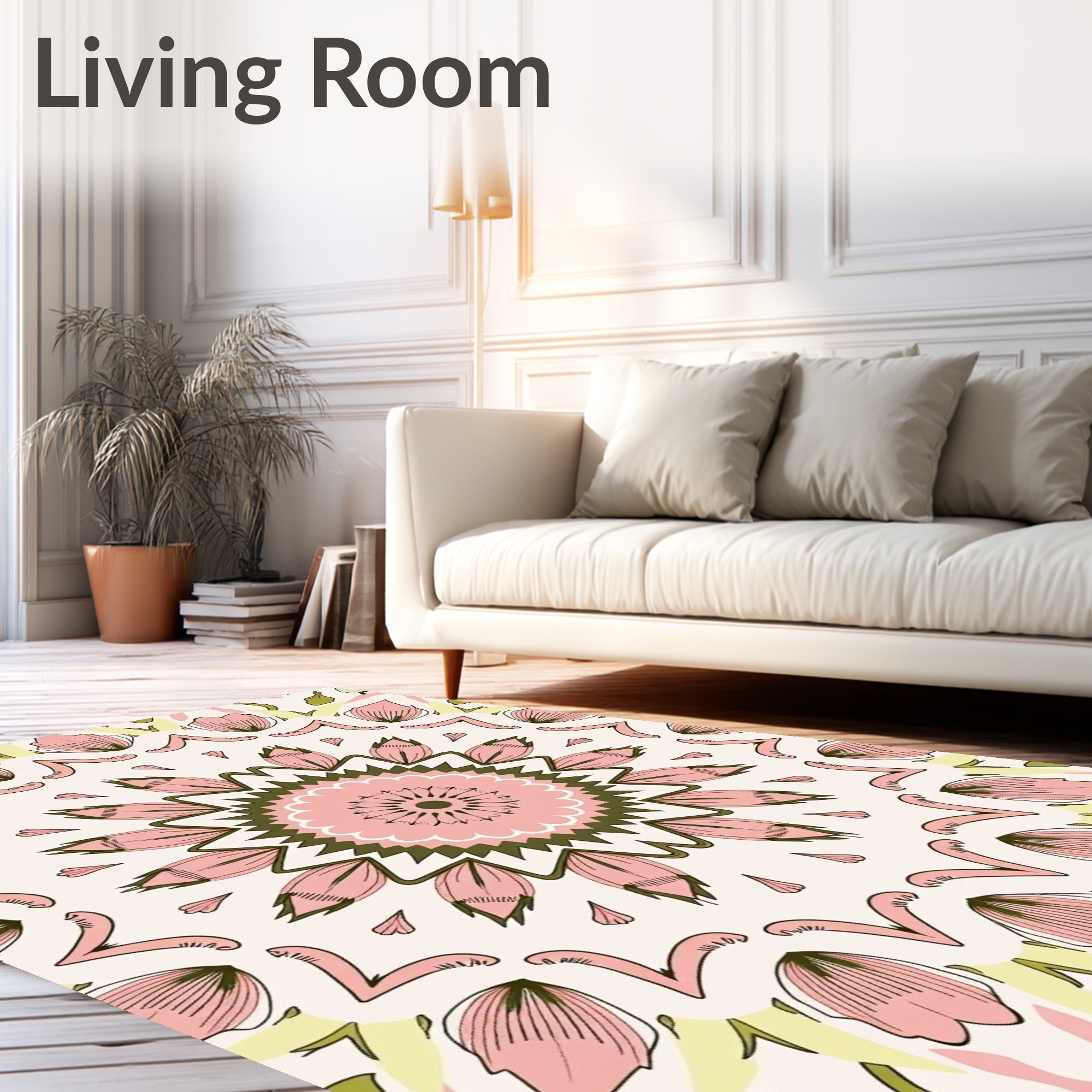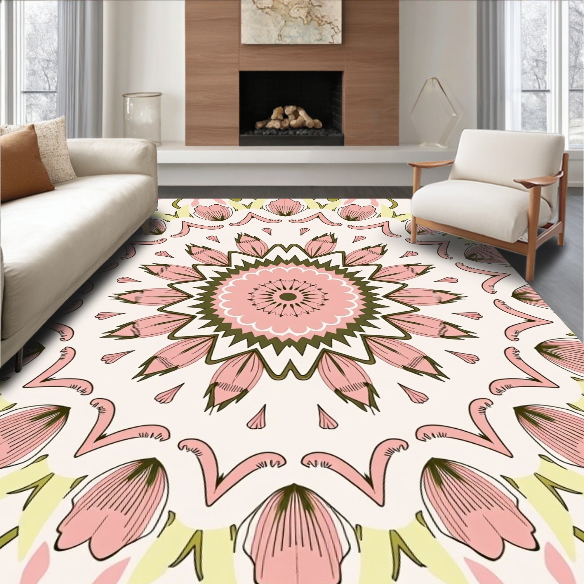 Flatwoven High Traffic Area Rug, Boho Petal Art with Subtle Botanical Details, Non Slip, Stain Resistant, Washable Area Rugs for Living Room, Bedroom (Pink) Overview: