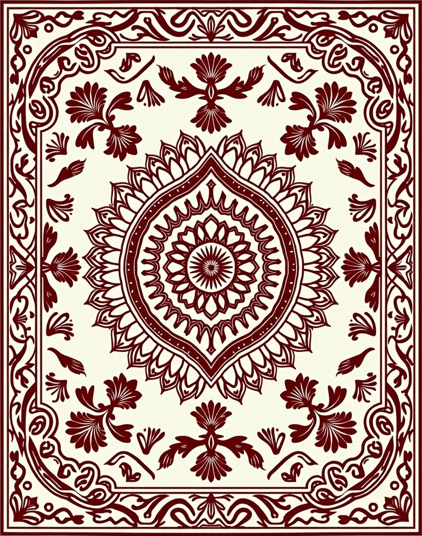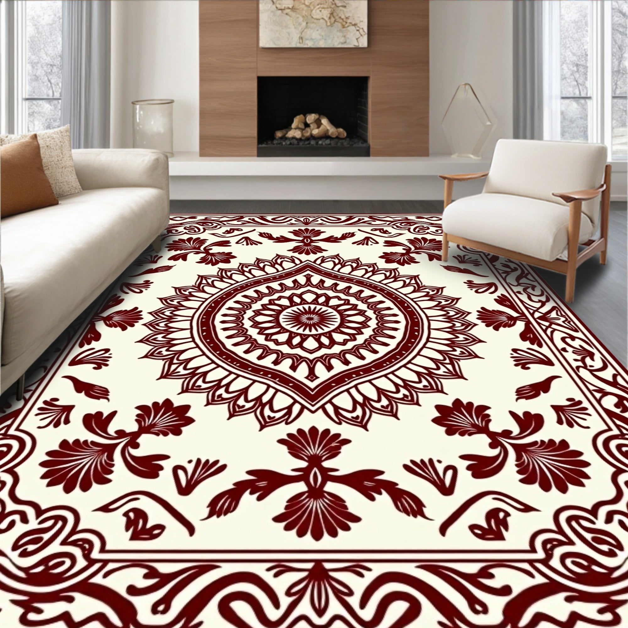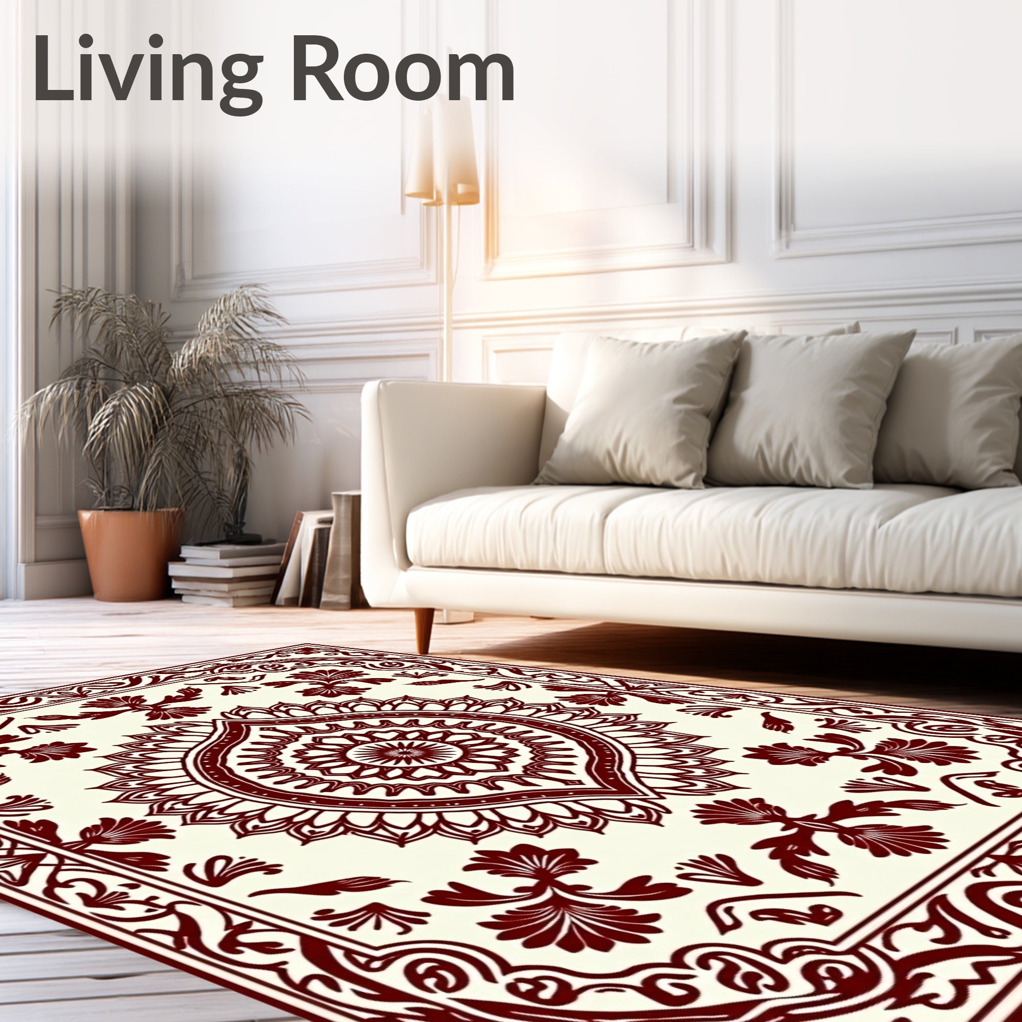 Flatwoven High Traffic Area Rug, Boho Tapestry Design with Ornate Floral, Non Slip, Stain Resistant, Washable Area Rugs for Living Room, Bedroom (Red) Overview: