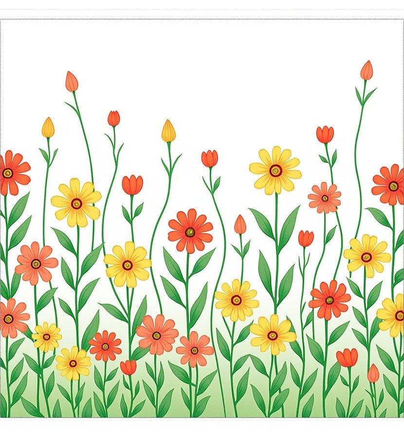 Botanical Meadow Blooms with Whimsical Leafy Accents (Yellow)