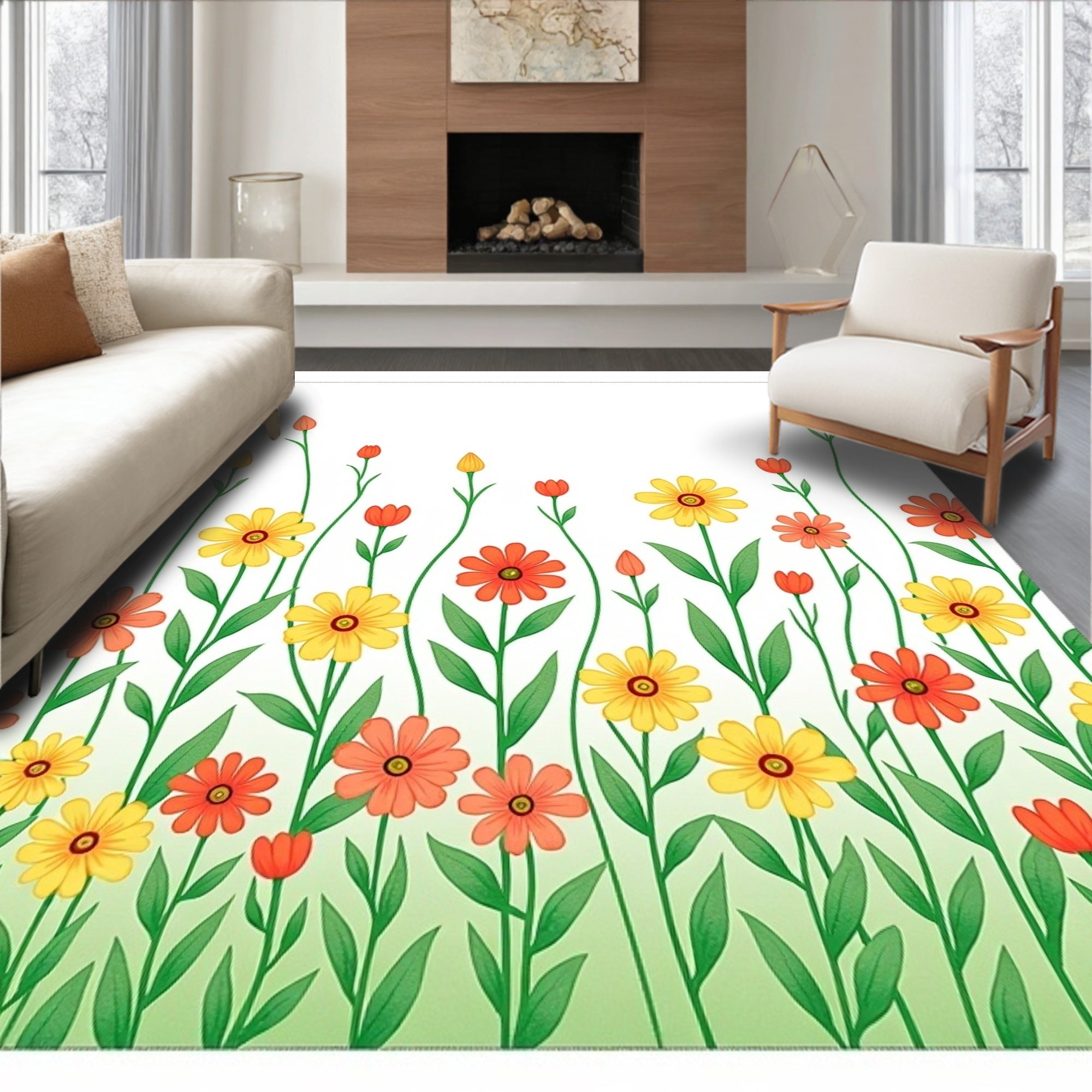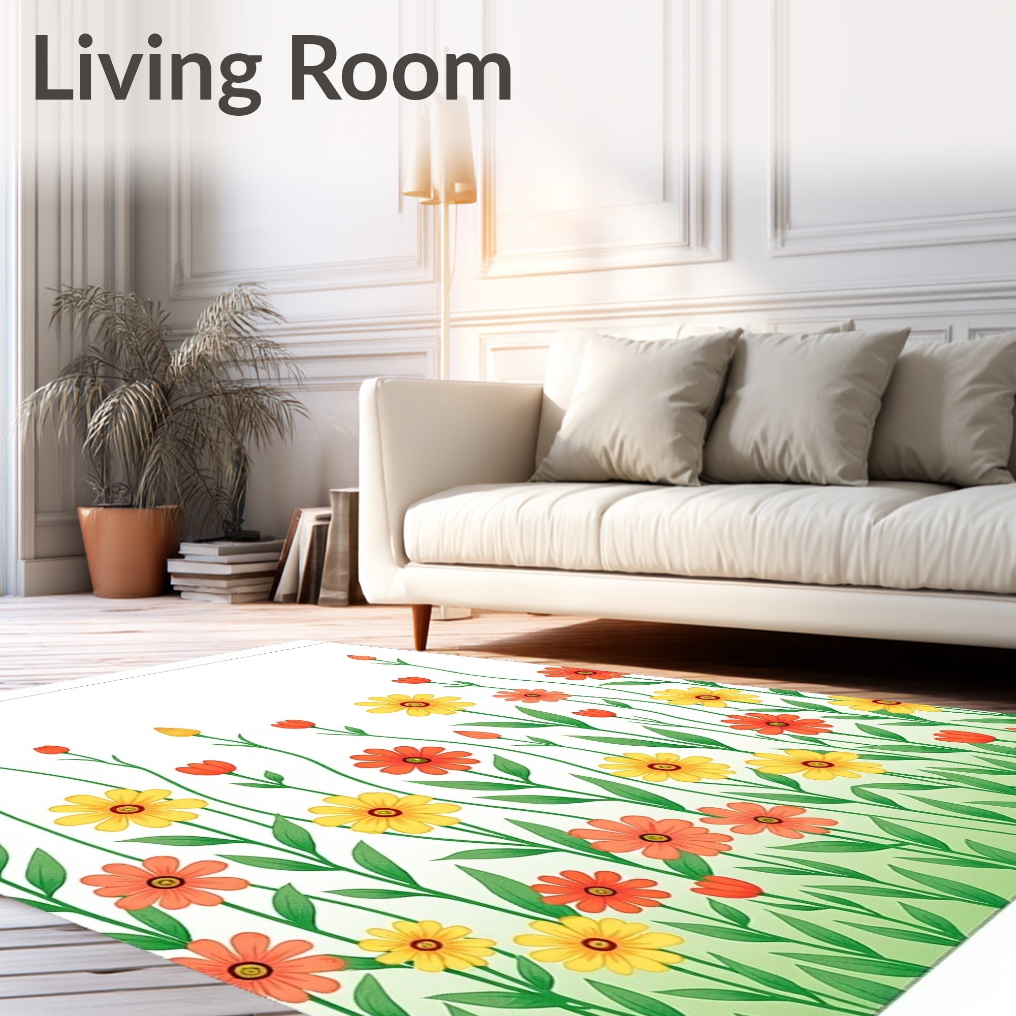 Flatwoven High Traffic Area Rug, Botanical Meadow Blooms with Whimsical Leafy Accents, Non Slip, Stain Resistant, Washable Area Rugs for Living Room, Bedroom (Yellow) Overview: