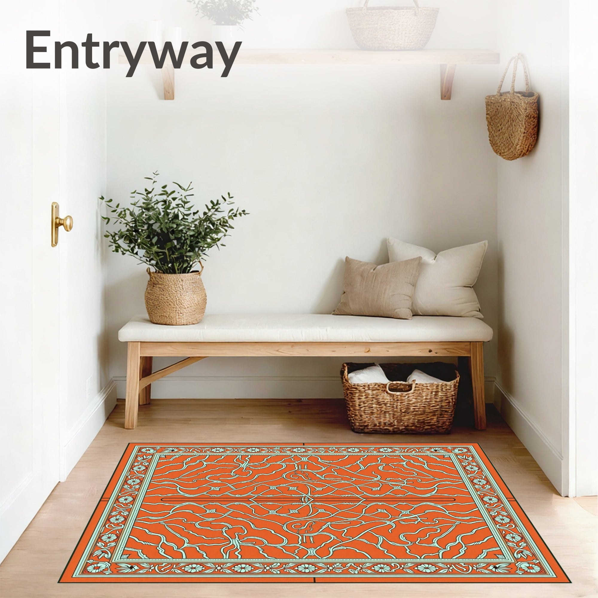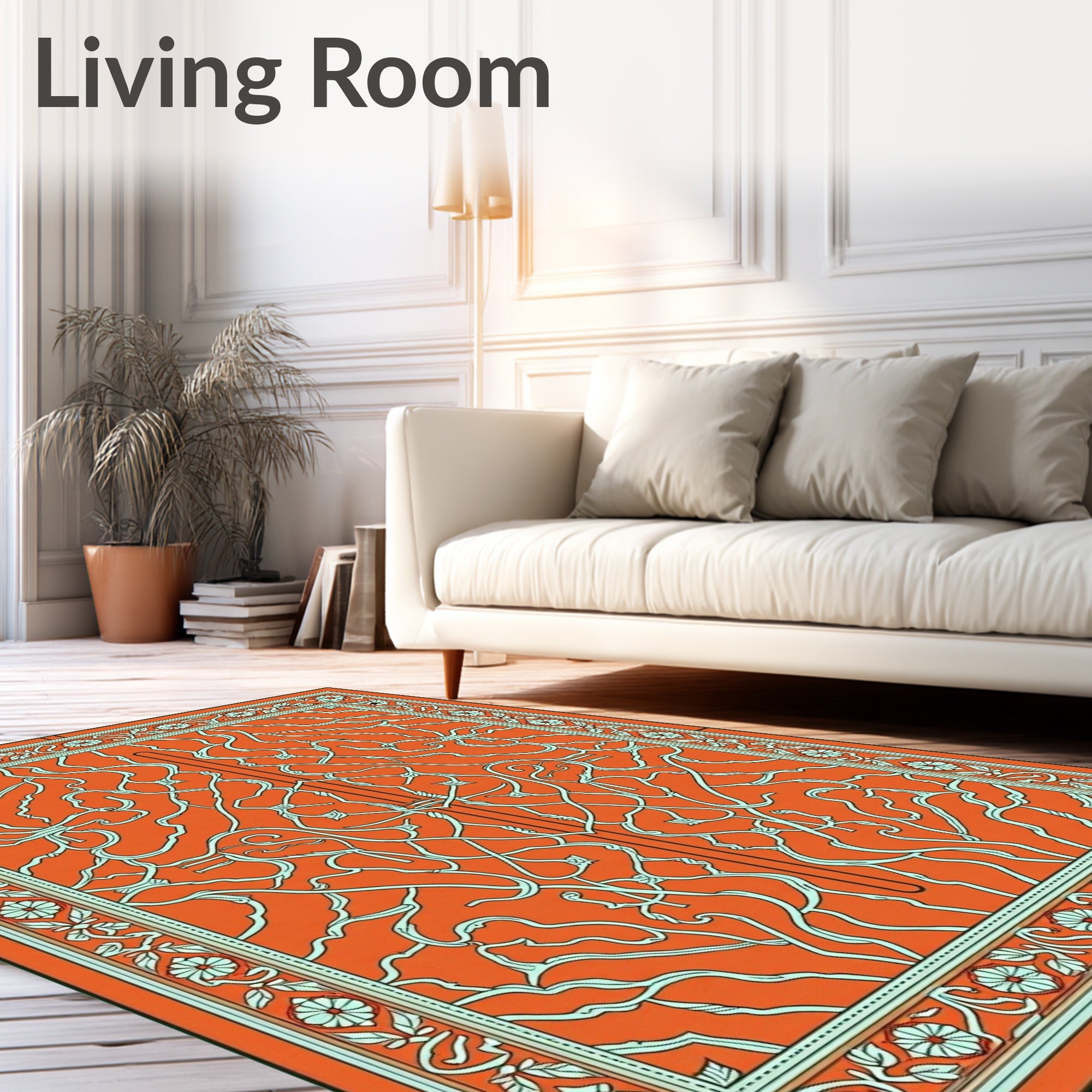 Flatwoven High Traffic Area Rug, Botanical Trellis Featuring Ornate Petals and Latticework Detailing, Non Slip, Stain Resistant, Washable Area Rugs for Living Room, Bedroom (Orange) Overview: