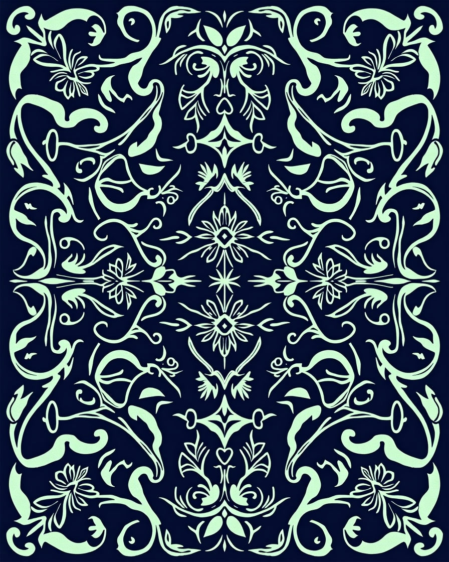 Botanical Vine Scroll Dense Modern Abstract Flowing Design (Blue)
