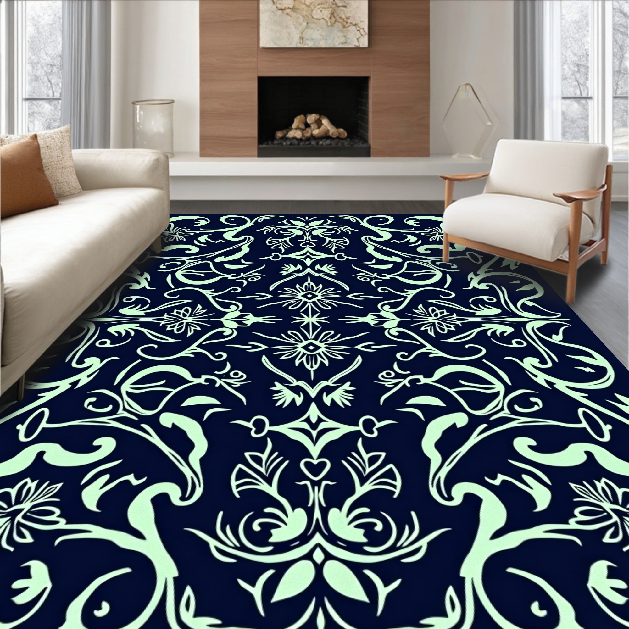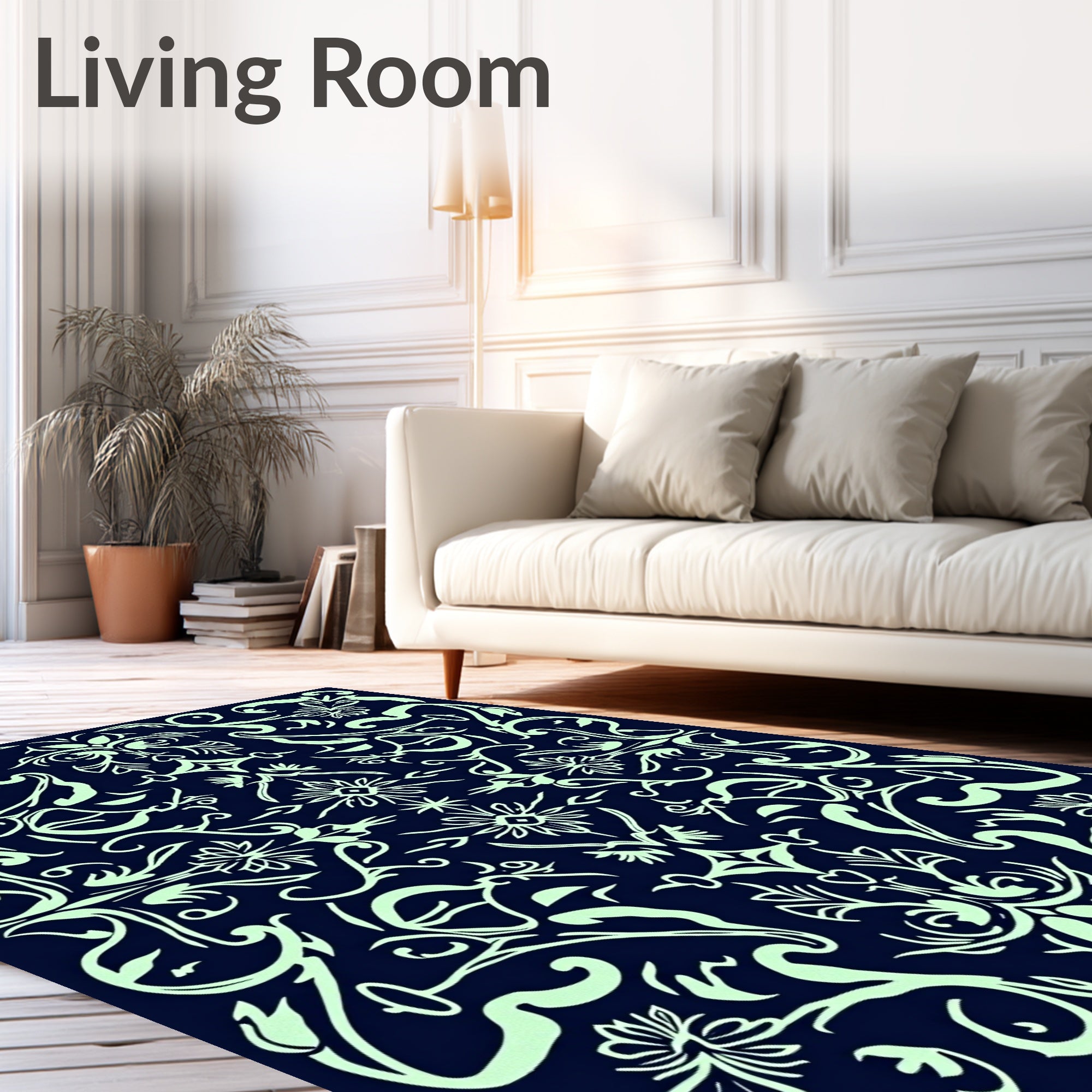 Flatwoven High Traffic Area Rug, Botanical Vine Scroll Dense Modern Abstract Flowing Design, Non Slip, Stain Resistant, Washable Area Rugs for Living Room, Bedroom (Blue) Overview:
