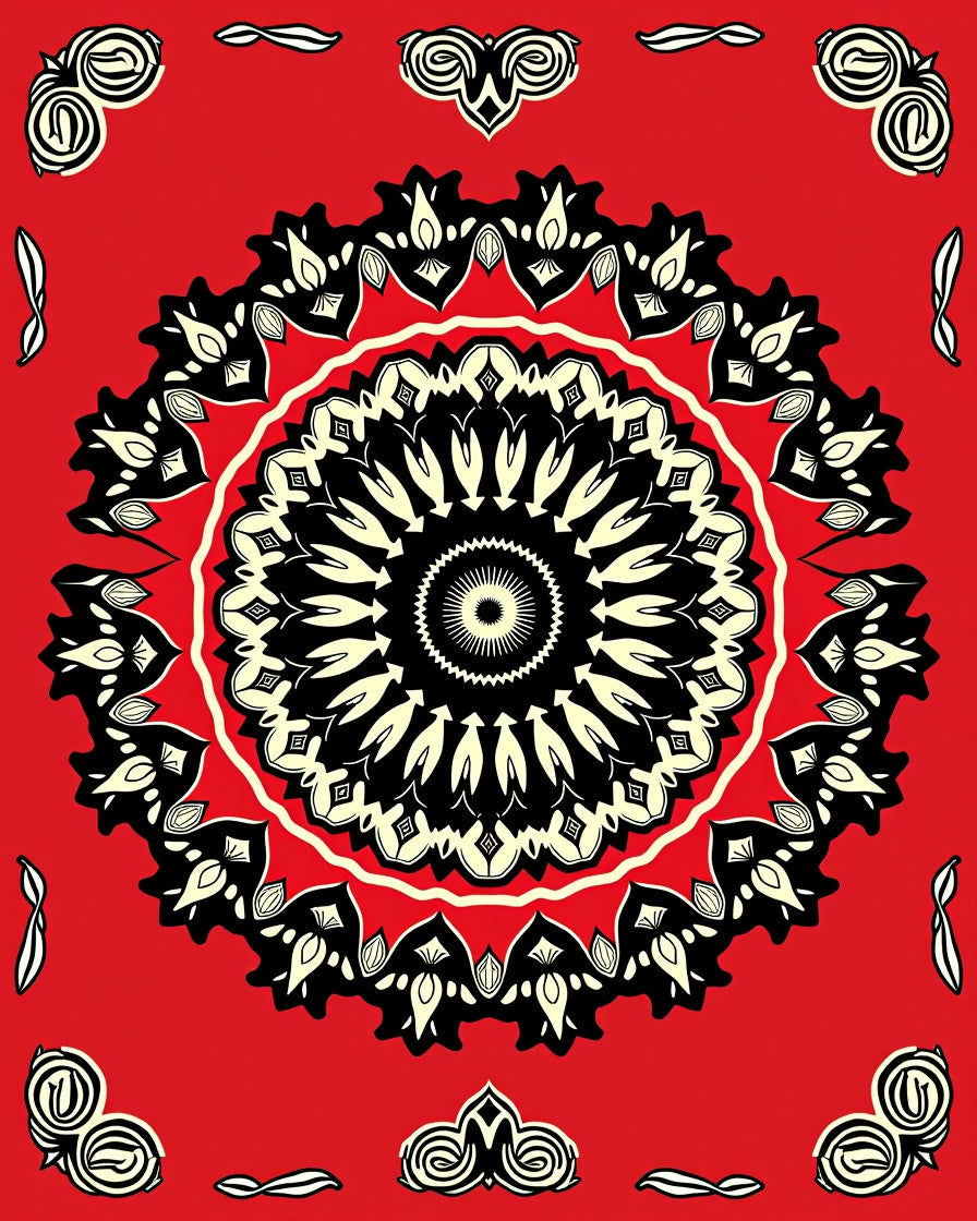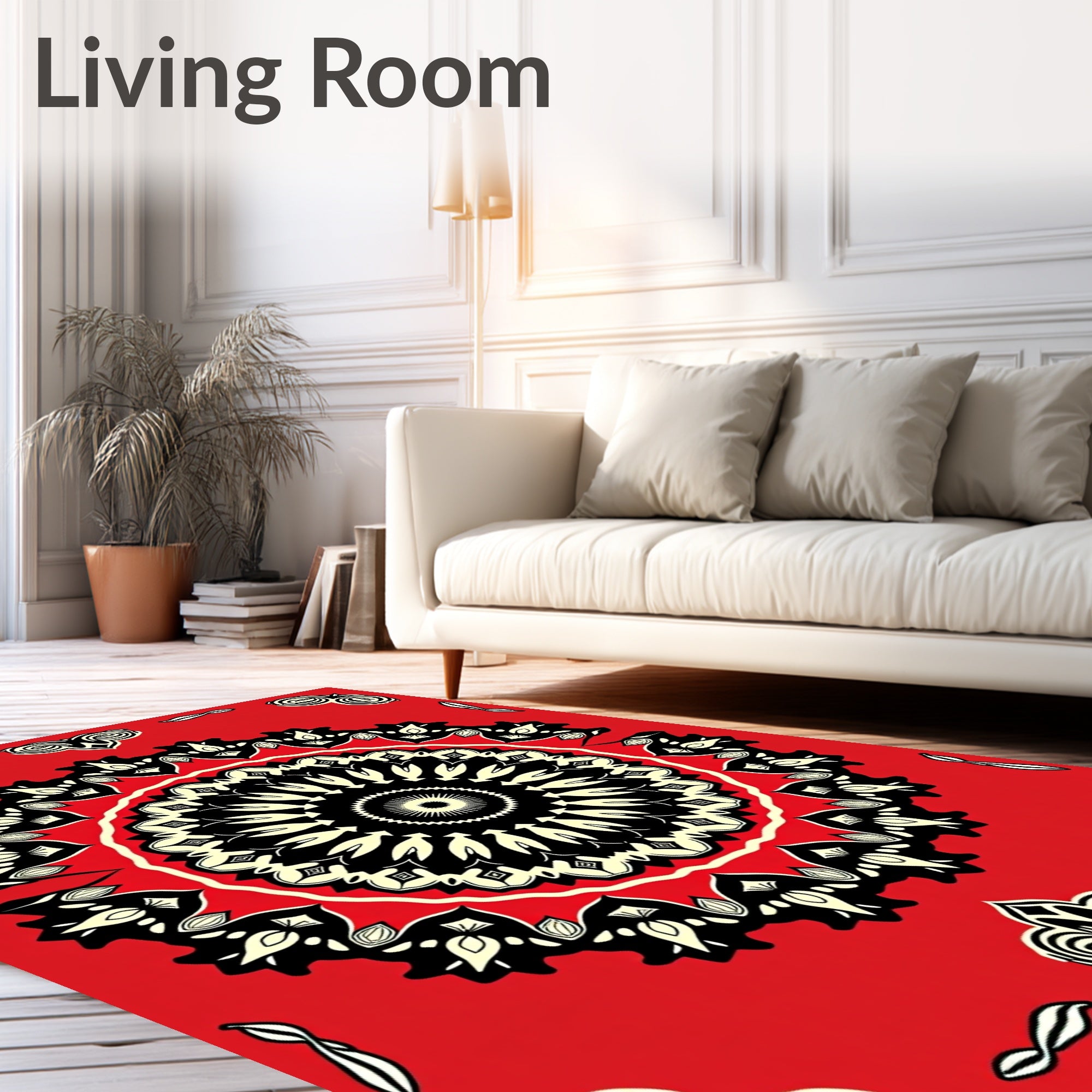 Burst Medallion Ornate Boho Chic Statement Floor Art (Red)
