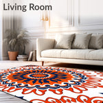 Flatwoven High Traffic Area Rug, Burst Ornamental Tapestry Design Pile Indoor Floor Covering, Non Slip, Stain Resistant, Washable Area Rugs for Living Room, Bedroom (Orange) Overview: