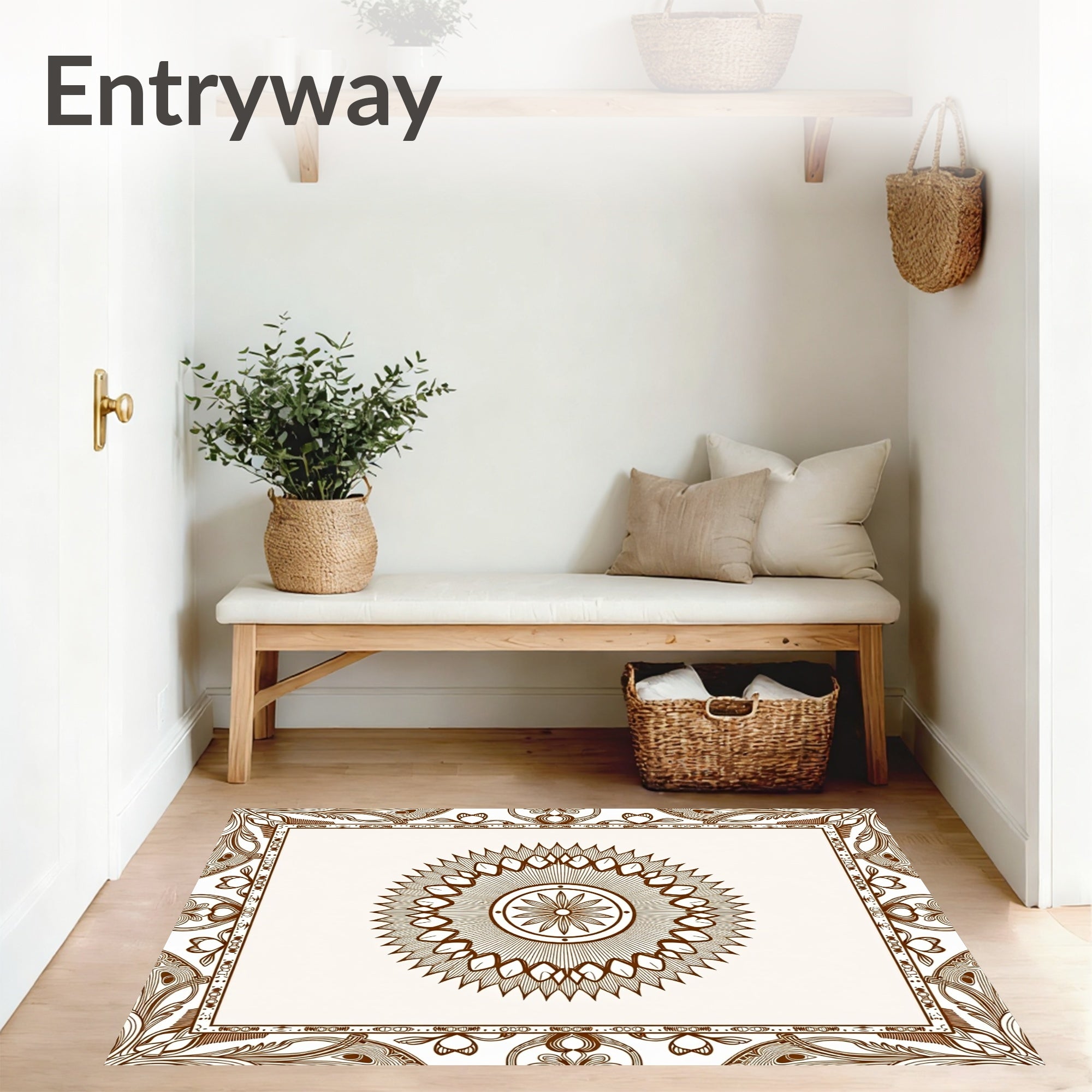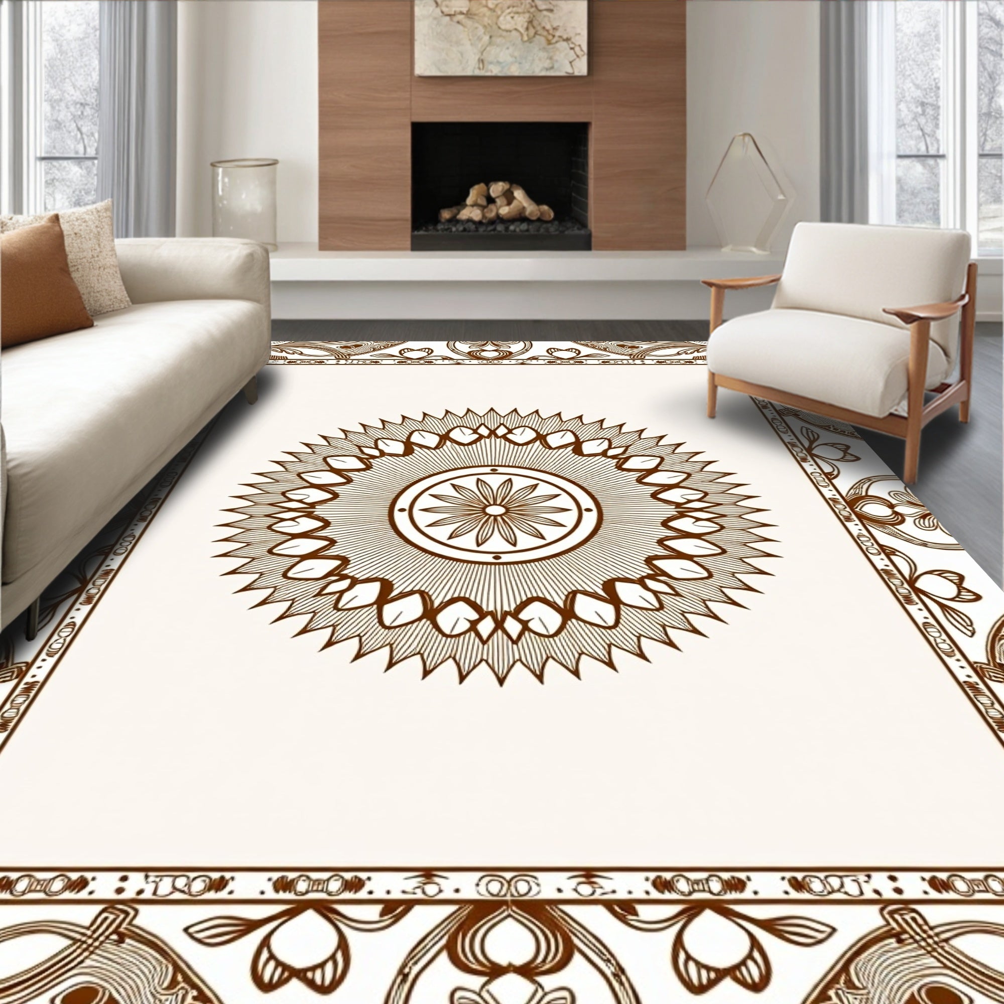 Flatwoven High Traffic Area Rug, Burst Plush Floor Covering with Symmetrical Botanical Design, Non Slip, Stain Resistant, Washable Area Rugs for Living Room, Bedroom (Brown) Overview: