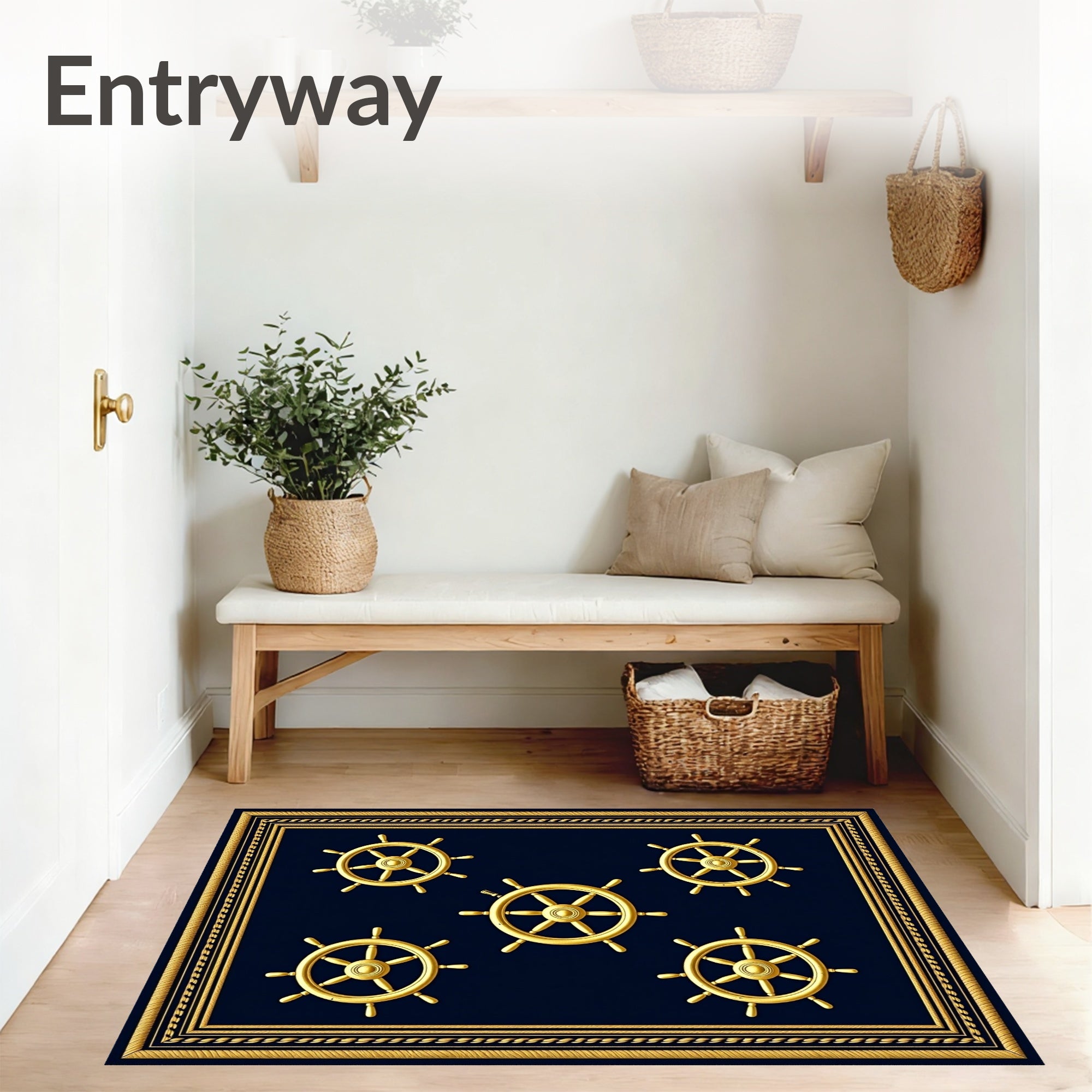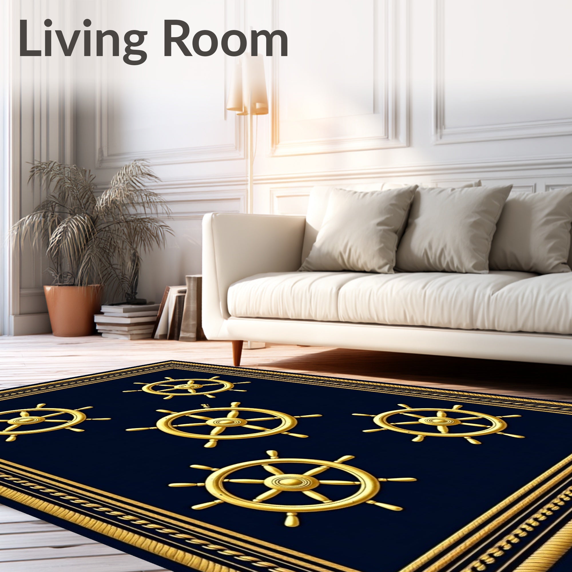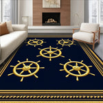 Flatwoven High Traffic Area Rug, Captain Helm Sailing Ship Wheel Maritime, Non Slip, Stain Resistant, Washable Area Rugs for Living Room, Bedroom (Gold) Overview: