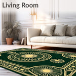 Flatwoven High Traffic Area Rug, Celestial Medallion Interlocking with Starburst Accents, Non Slip, Stain Resistant, Washable Area Rugs for Living Room, Bedroom (Green) Overview:
