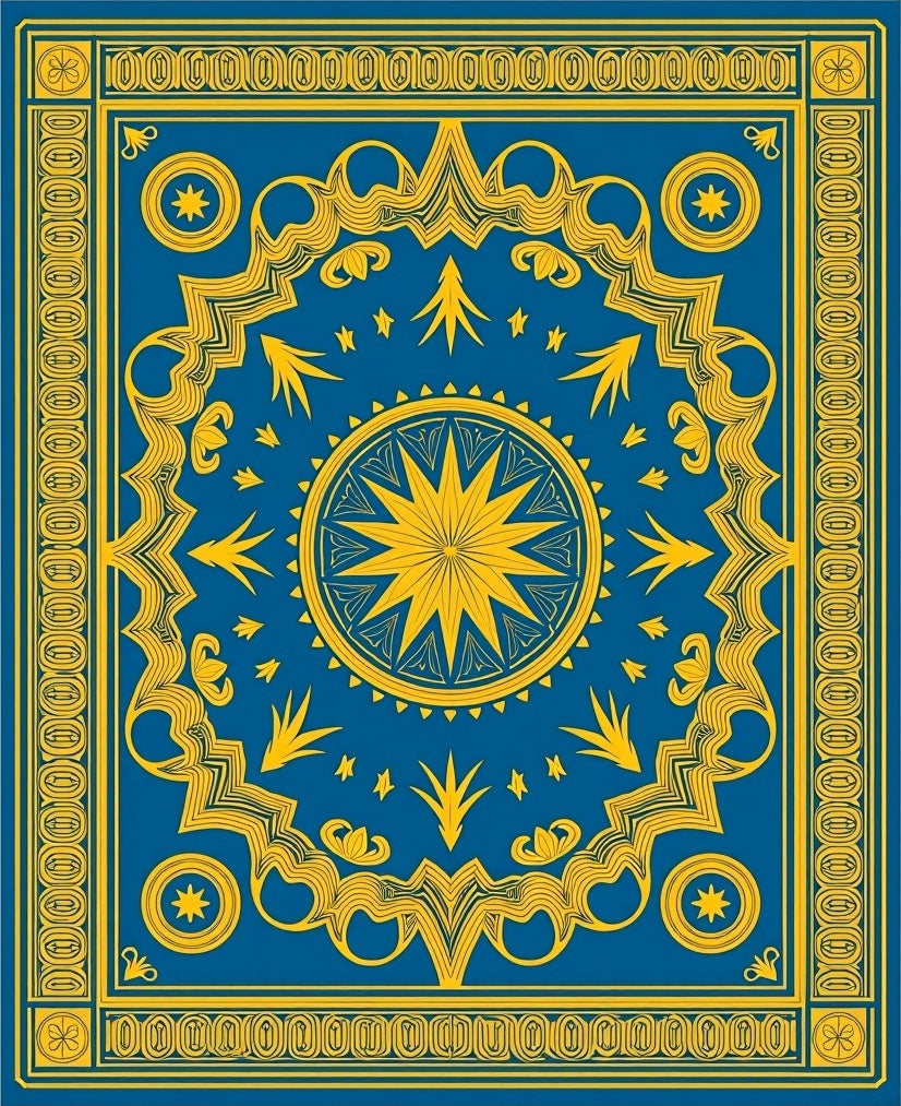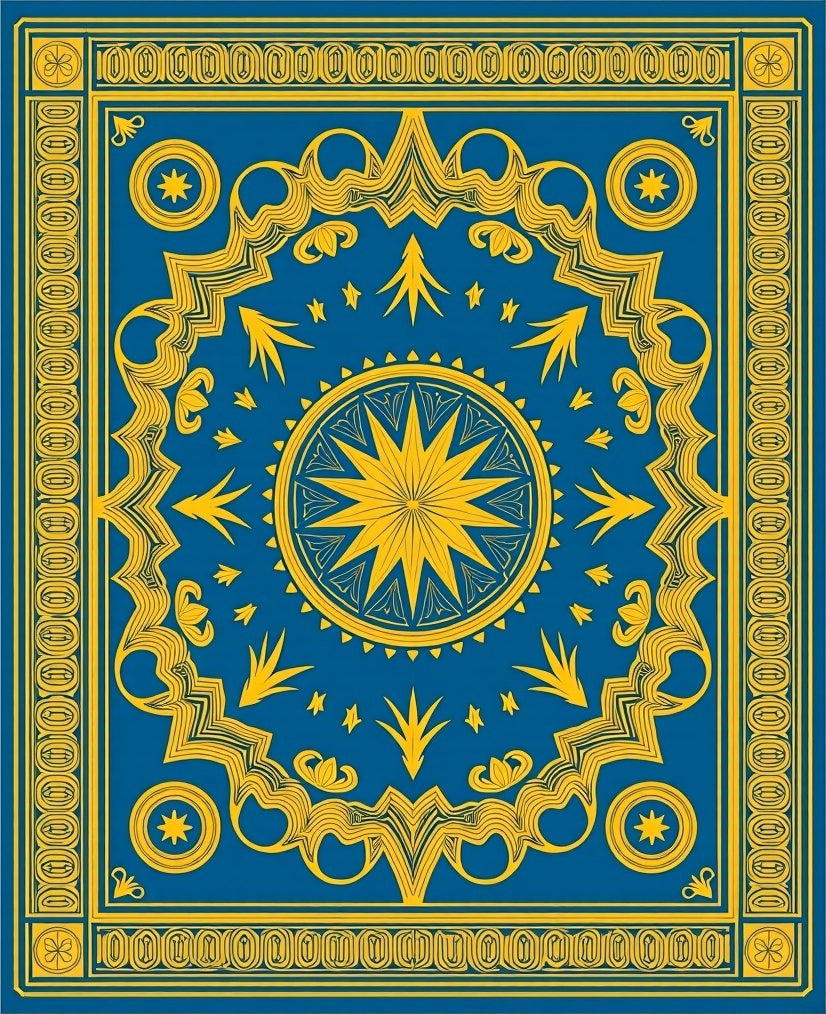 Celestial Medallion Symmetrical Artistic Elegant Ornate (Blue)