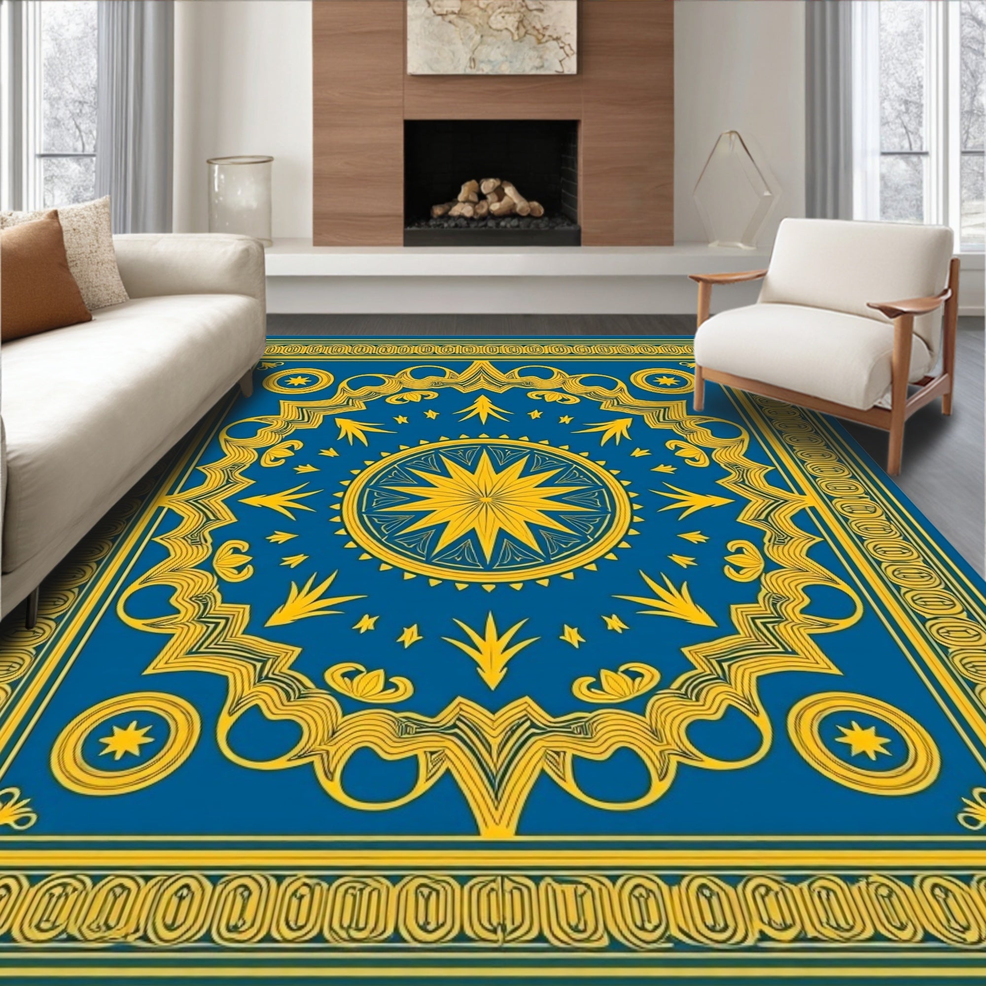 Flatwoven High Traffic Area Rug, Celestial Medallion Symmetrical Artistic Elegant Ornate, Non Slip, Stain Resistant, Washable Area Rugs for Living Room, Bedroom (Blue) Overview:
