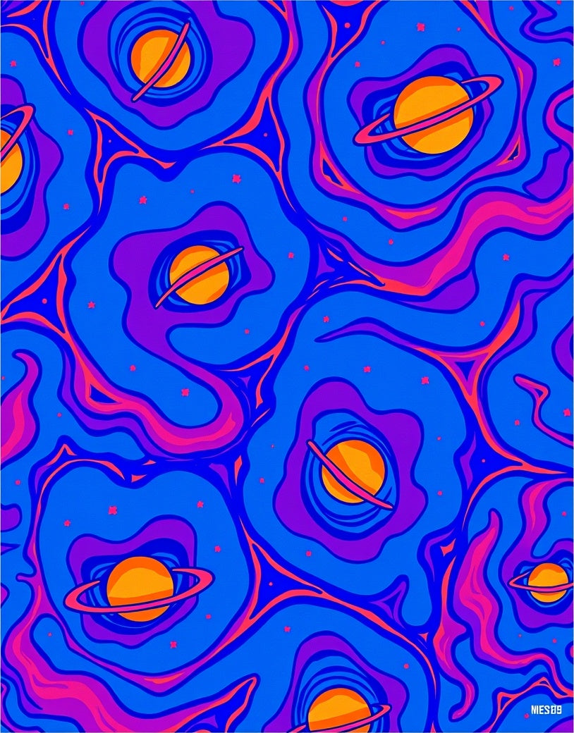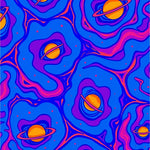 Celestial Planetscape with Meteor Streams and Cosmic Swirls (Blue)