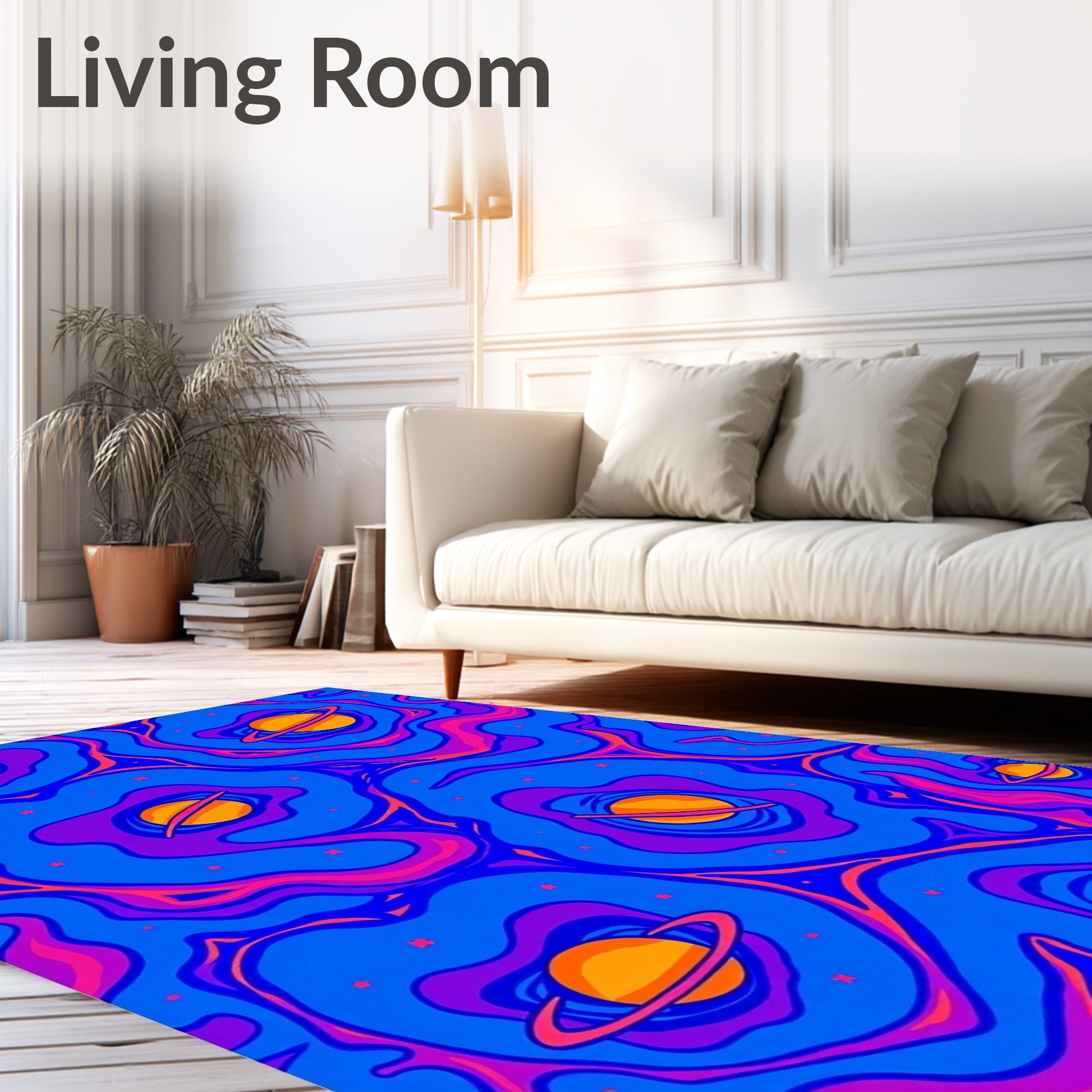 Flatwoven High Traffic Area Rug, Celestial Planetscape with Meteor Streams and Cosmic Swirls, Non Slip, Stain Resistant, Washable Area Rugs for Living Room, Bedroom (Blue) Overview: