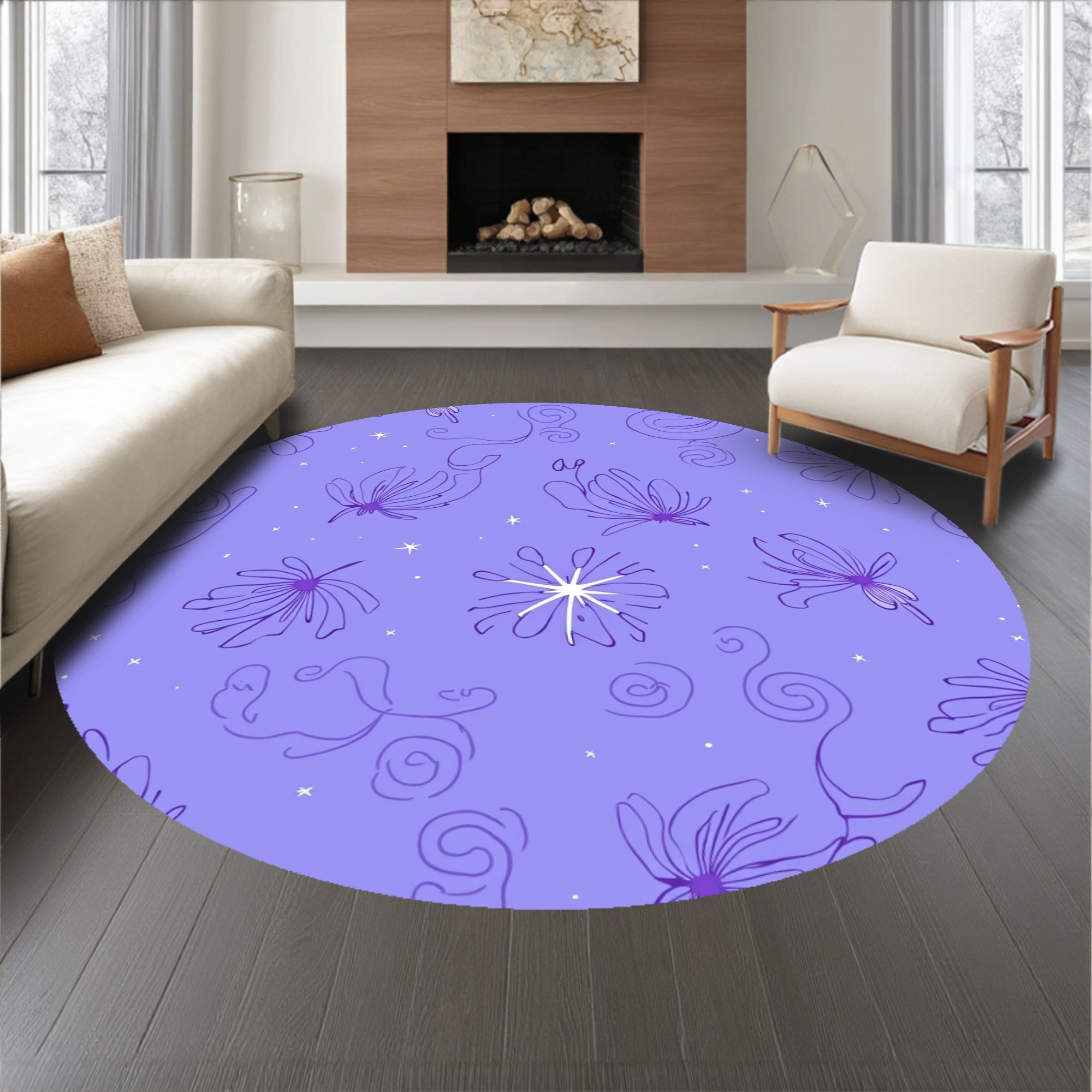 Flatwoven High Traffic Area Rug, Celestial Starry Night Dreamscape Ethereal Constellation, Non Slip, Stain Resistant, Washable Area Rugs for Living Room, Bedroom (Purple) Overview:
