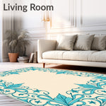 Flatwoven High Traffic Area Rug, Celestial with Interlocking Floral Scrolls, Non Slip, Stain Resistant, Washable Area Rugs for Living Room, Bedroom (Beige) Overview: