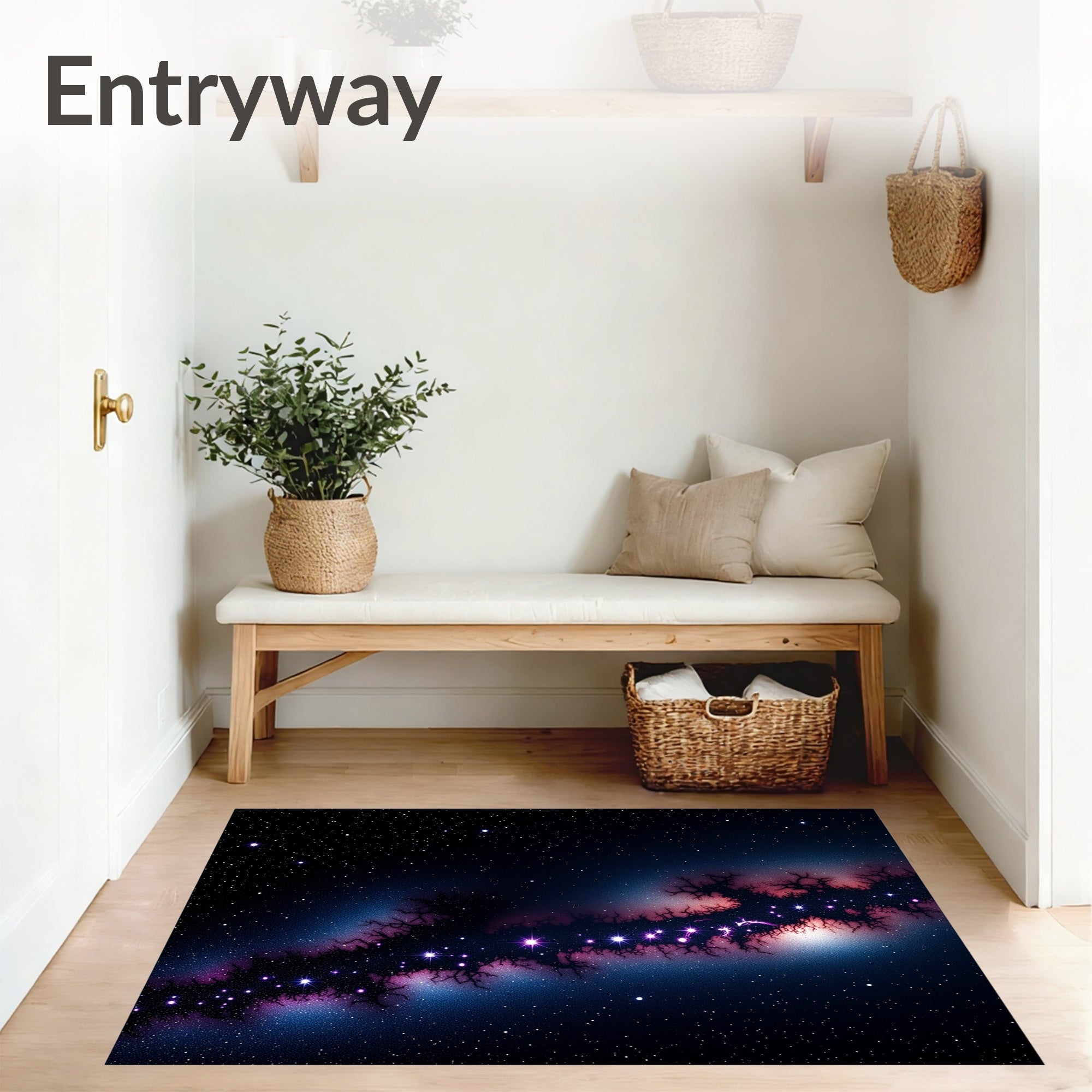 Flatwoven High Traffic Area Rug, Celestial Wonder Milky Way Horizon, Non Slip, Stain Resistant, Washable Area Rugs for Living Room, Bedroom (Black) Overview: