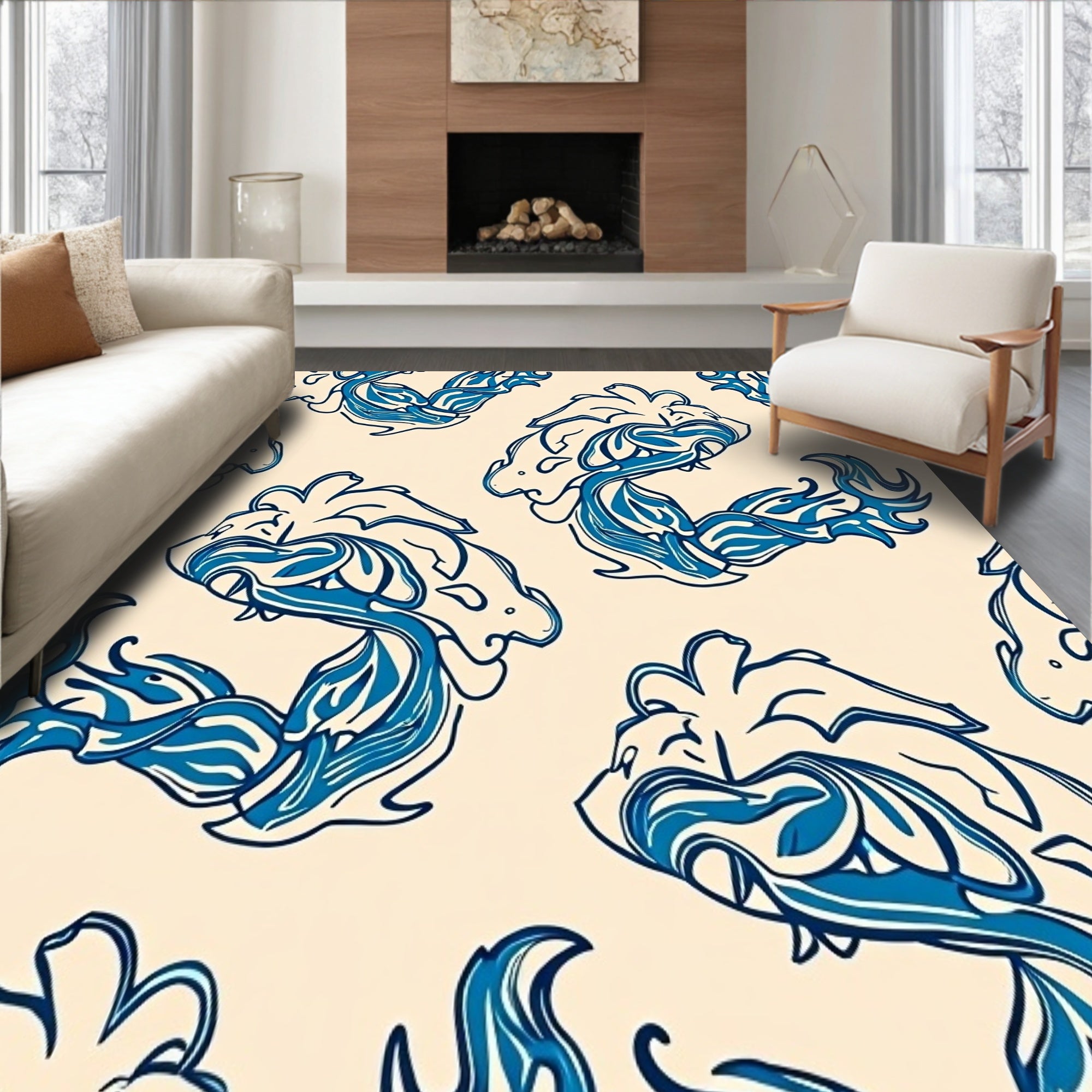 Flatwoven High Traffic Area Rug, Chinese Dragon Cloud Motif Anti Slip Interior, Non Slip, Stain Resistant, Washable Area Rugs for Living Room, Bedroom (Beige) Overview: