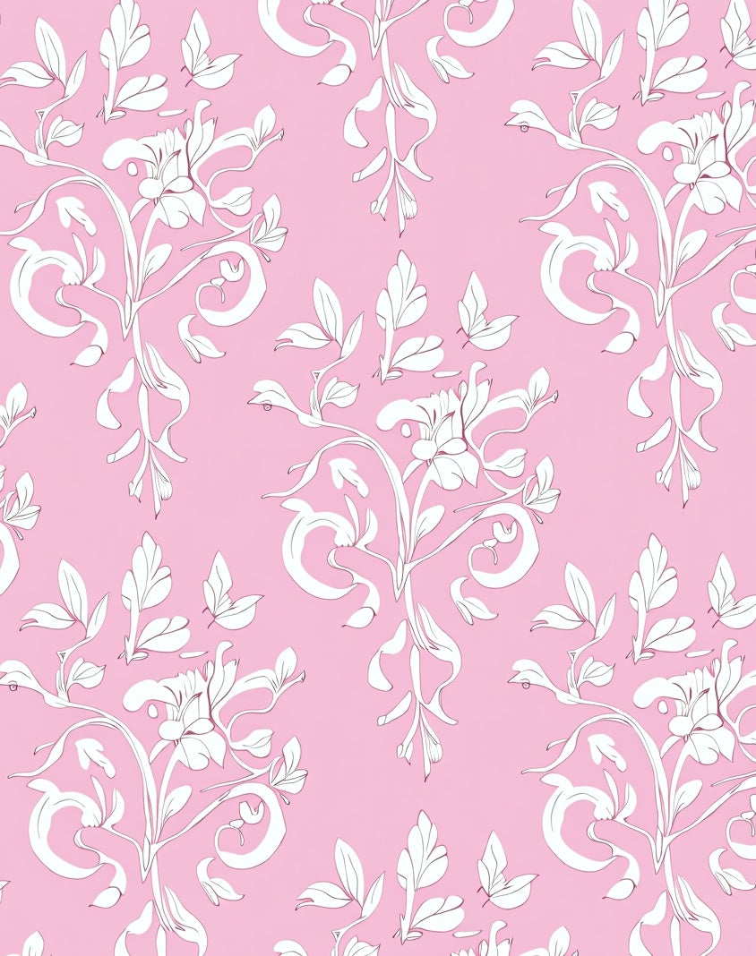 Chintz Inspired Garden Scroll with Delicate Leaf and Blossom Accents (Pink)