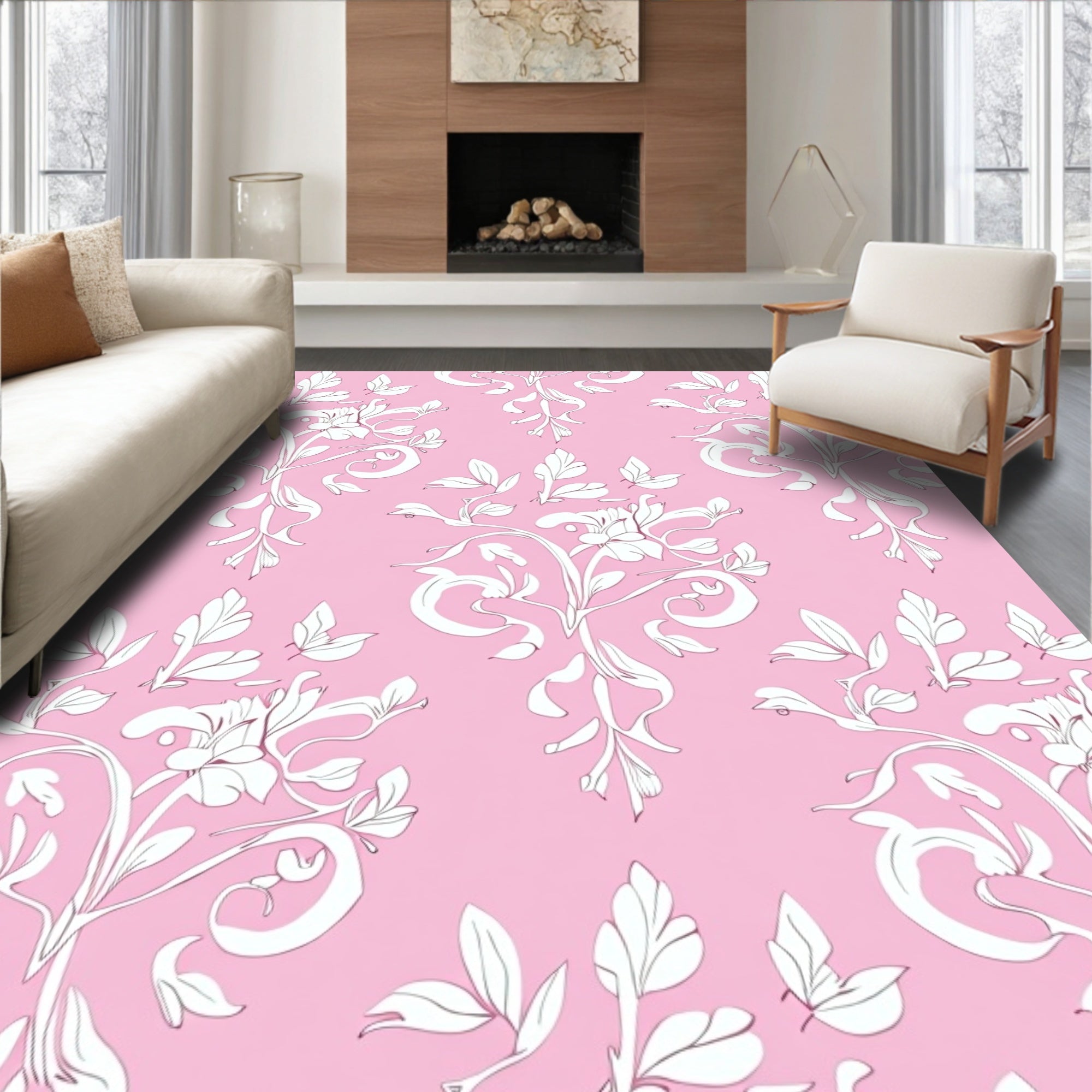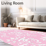 Flatwoven High Traffic Area Rug, Chintz Inspired Garden Scroll with Delicate Leaf and Blossom Accents, Non Slip, Stain Resistant, Washable Area Rugs for Living Room, Bedroom (Pink) Overview: