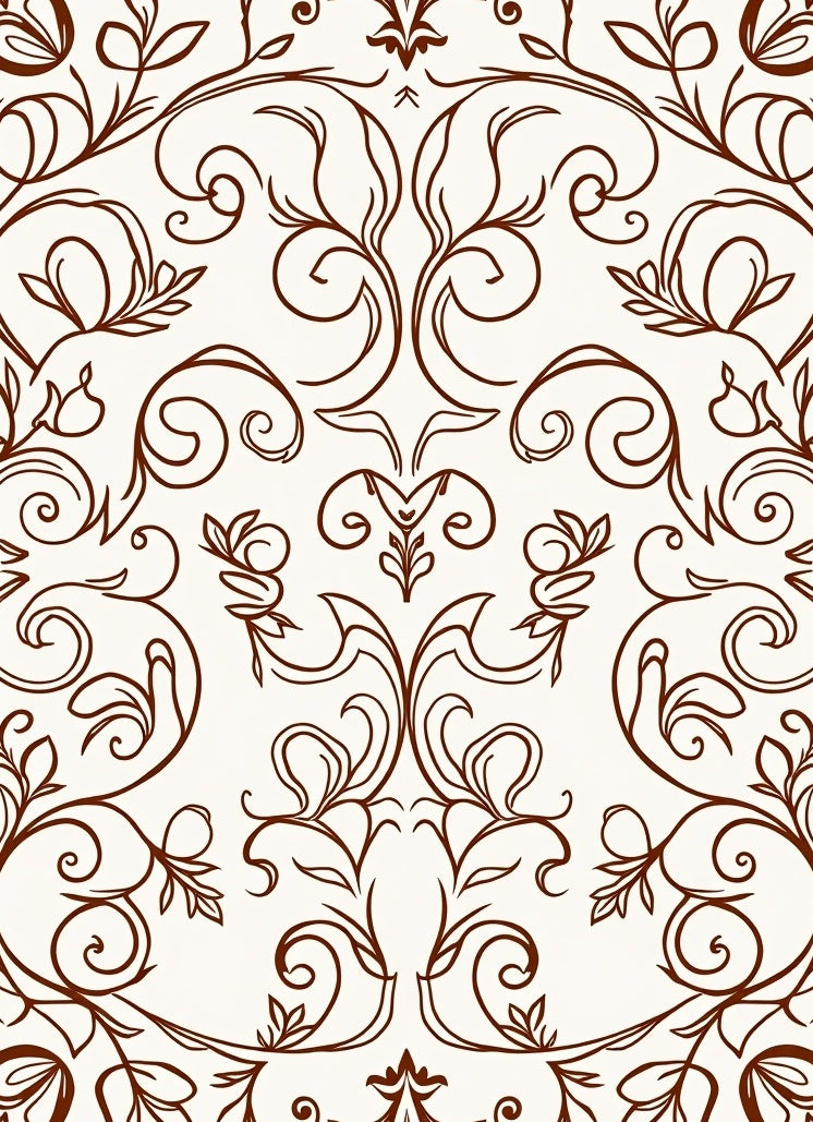 Classic Botanical Scroll Work with Vine Motif Non Skid Foundation (Brown)