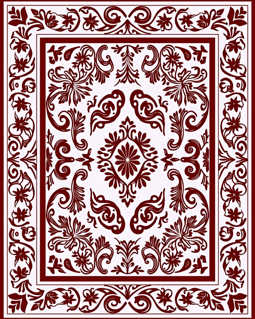 Classic Damask Featuring Elaborate Leafy Scrolls and Floral Embellishments (Red)