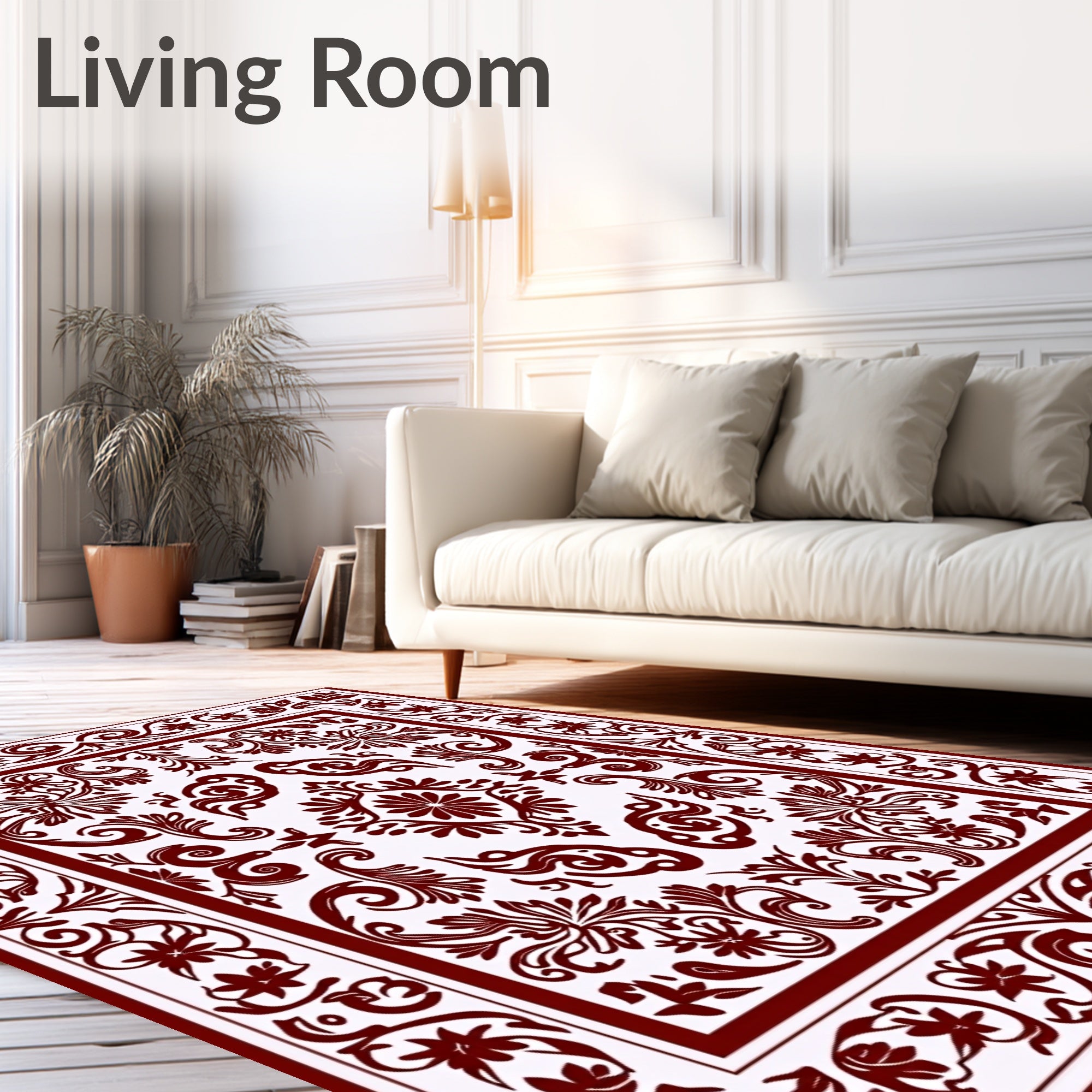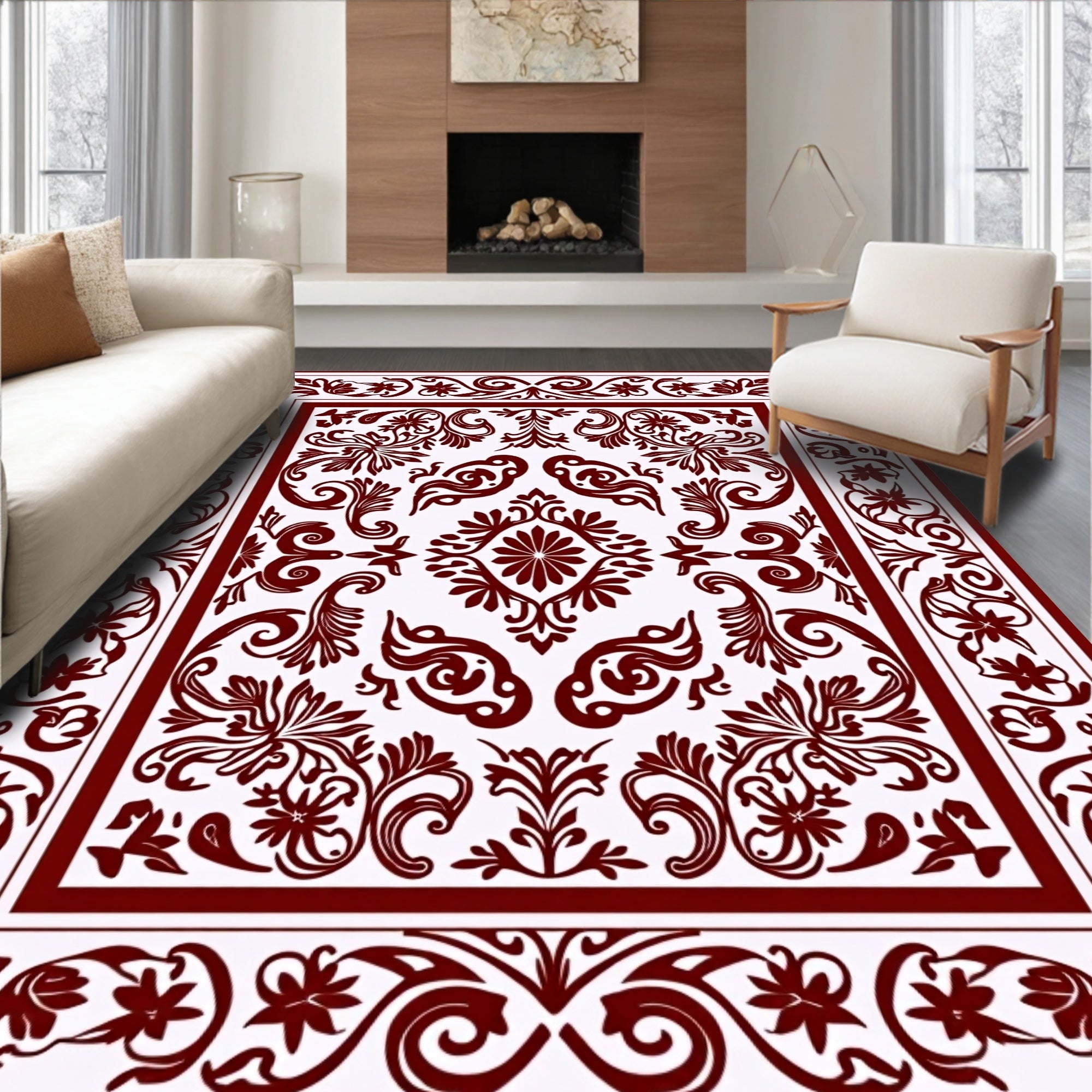 Flatwoven High Traffic Area Rug, Classic Damask Featuring Elaborate Leafy Scrolls and Floral Embellishments, Non Slip, Stain Resistant, Washable Area Rugs for Living Room, Bedroom (Red) Overview: