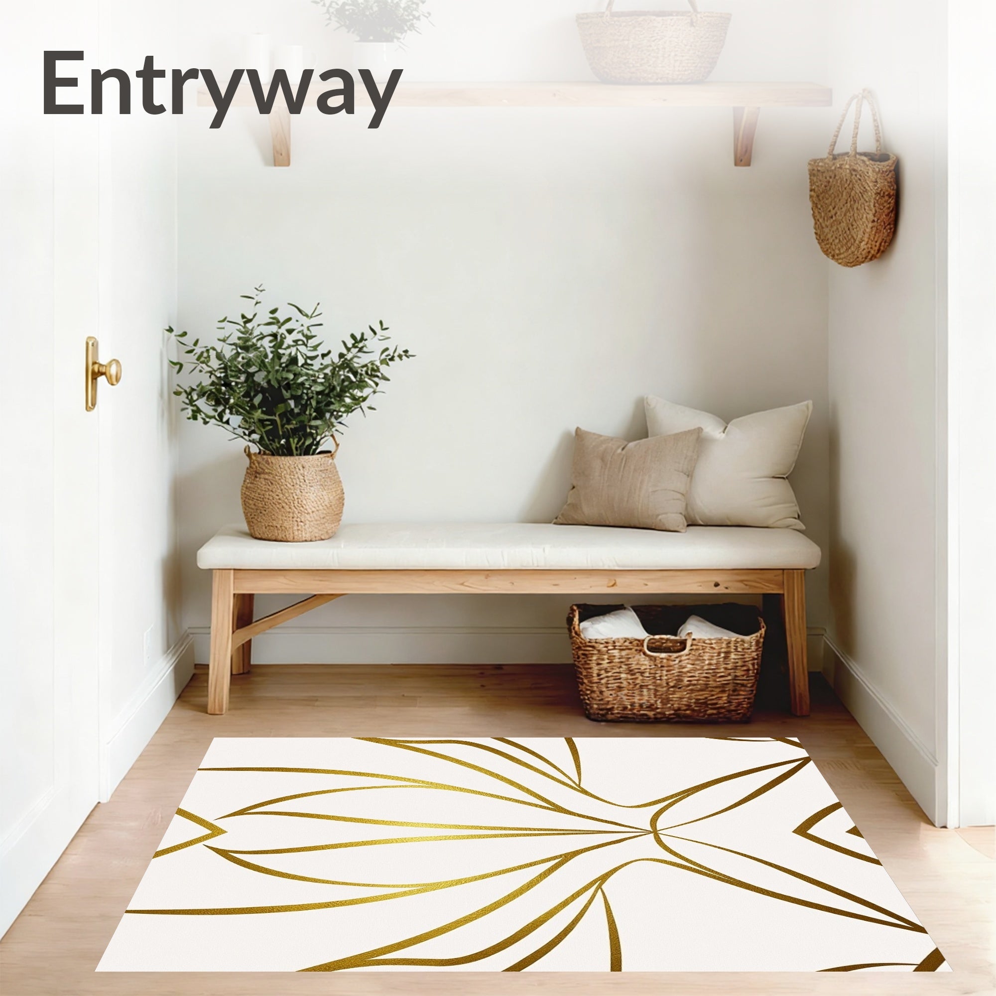 Flatwoven High Traffic Area Rug, Contemporary Abstract Overlapping Stripe Art Inspired, Non Slip, Stain Resistant, Washable Area Rugs for Living Room, Bedroom (Gold) Overview: