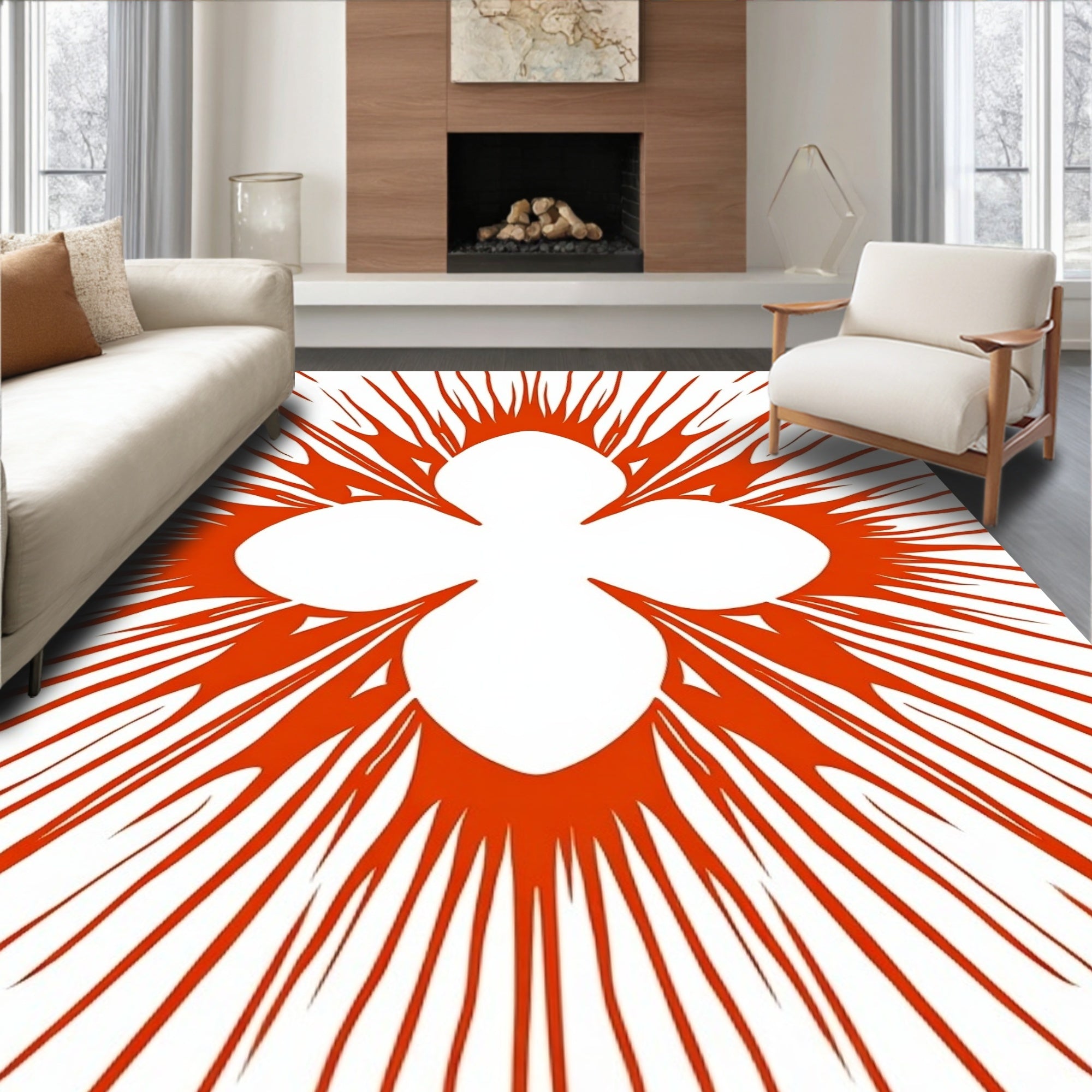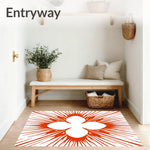 Flatwoven High Traffic Area Rug, Contemporary Radiant Burst with Symmetrical Interlocking, Non Slip, Stain Resistant, Washable Area Rugs for Living Room, Bedroom (Red) Overview: