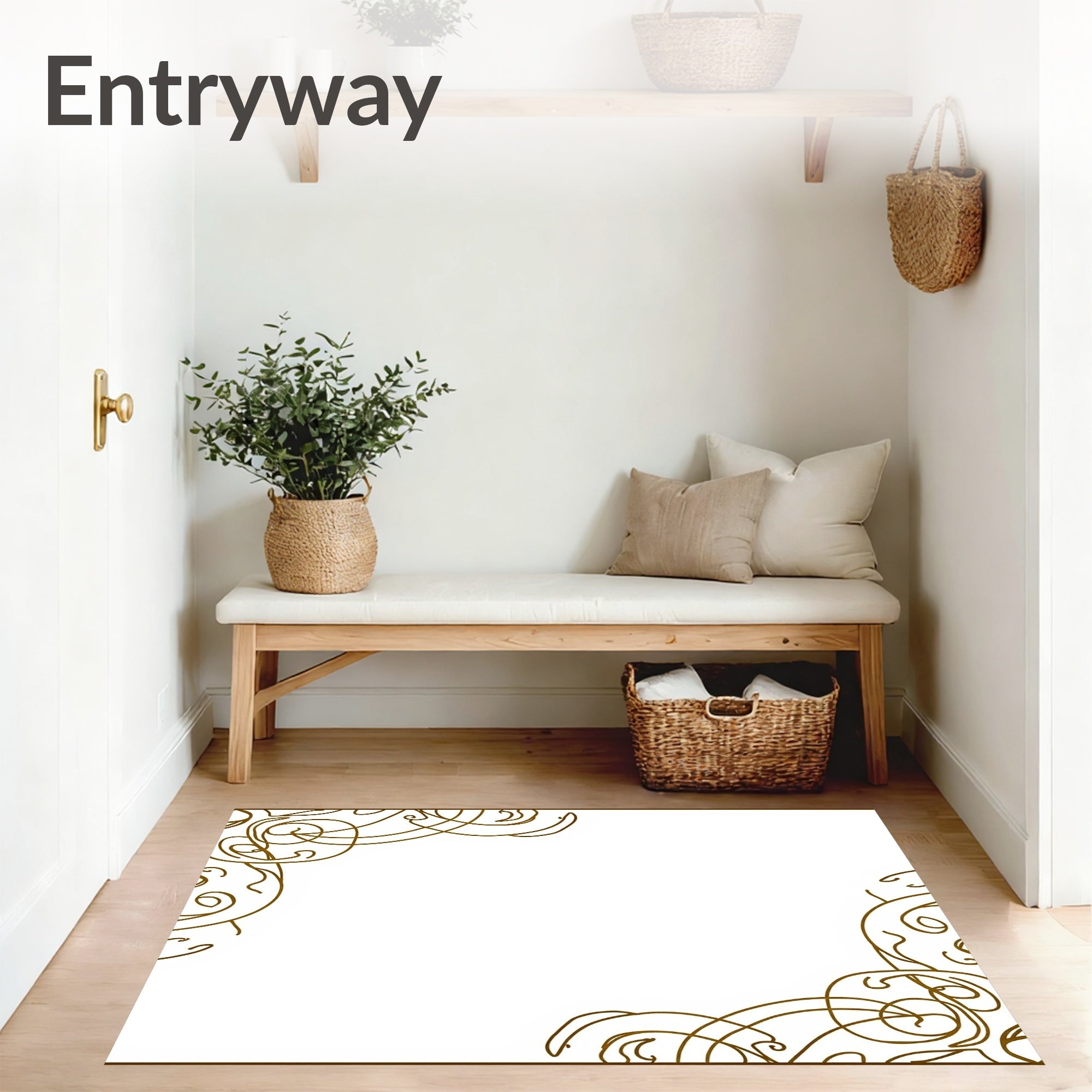 Flatwoven High Traffic Area Rug, Contemporary Swirling with Layered Curves and Subtle Contrasts, Non Slip, Stain Resistant, Washable Area Rugs for Living Room, Bedroom (Brown) Overview: