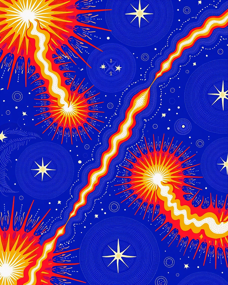 Cosmic Swirl with Interlocking Flares and Starlit Comets (Blue)