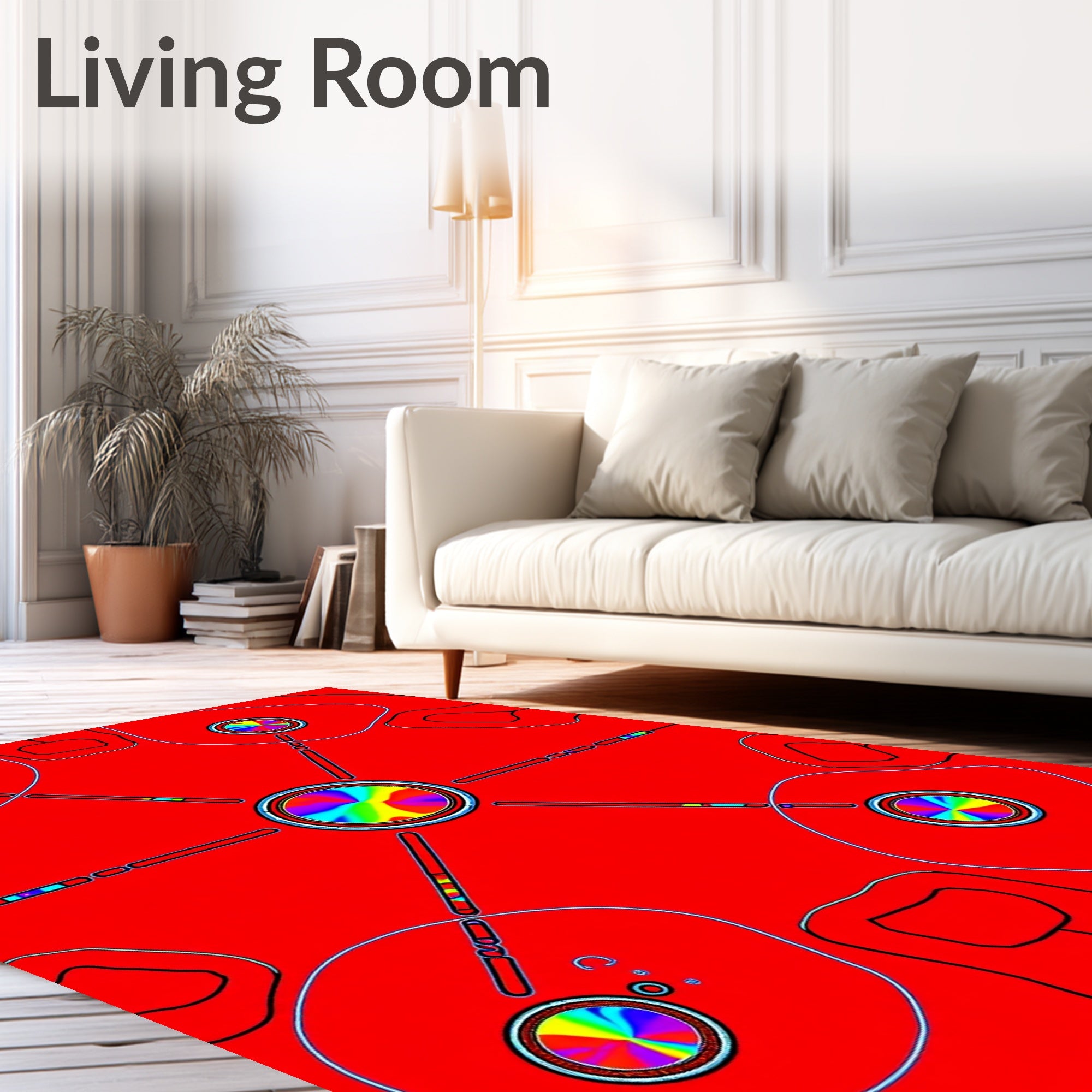 Flatwoven High Traffic Area Rug, Crystal Arcade Button Prismatic Virtual Reality Wonderland, Non Slip, Stain Resistant, Washable Area Rugs for Living Room, Bedroom (Red) Overview: