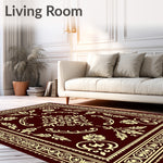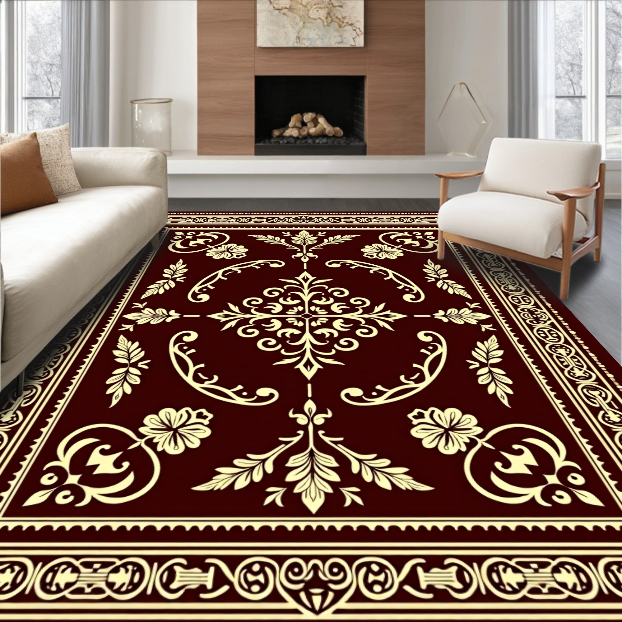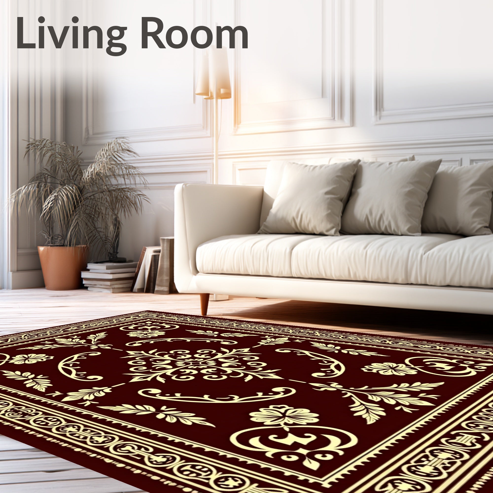 Flatwoven High Traffic Area Rug, Damask Baroque Elegance with Classical European Styling, Non Slip, Stain Resistant, Washable Area Rugs for Living Room, Bedroom (Brown) Overview: