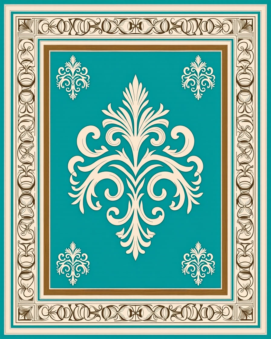 Damask Flourish with Elegant Perimeter Accents (Beige)