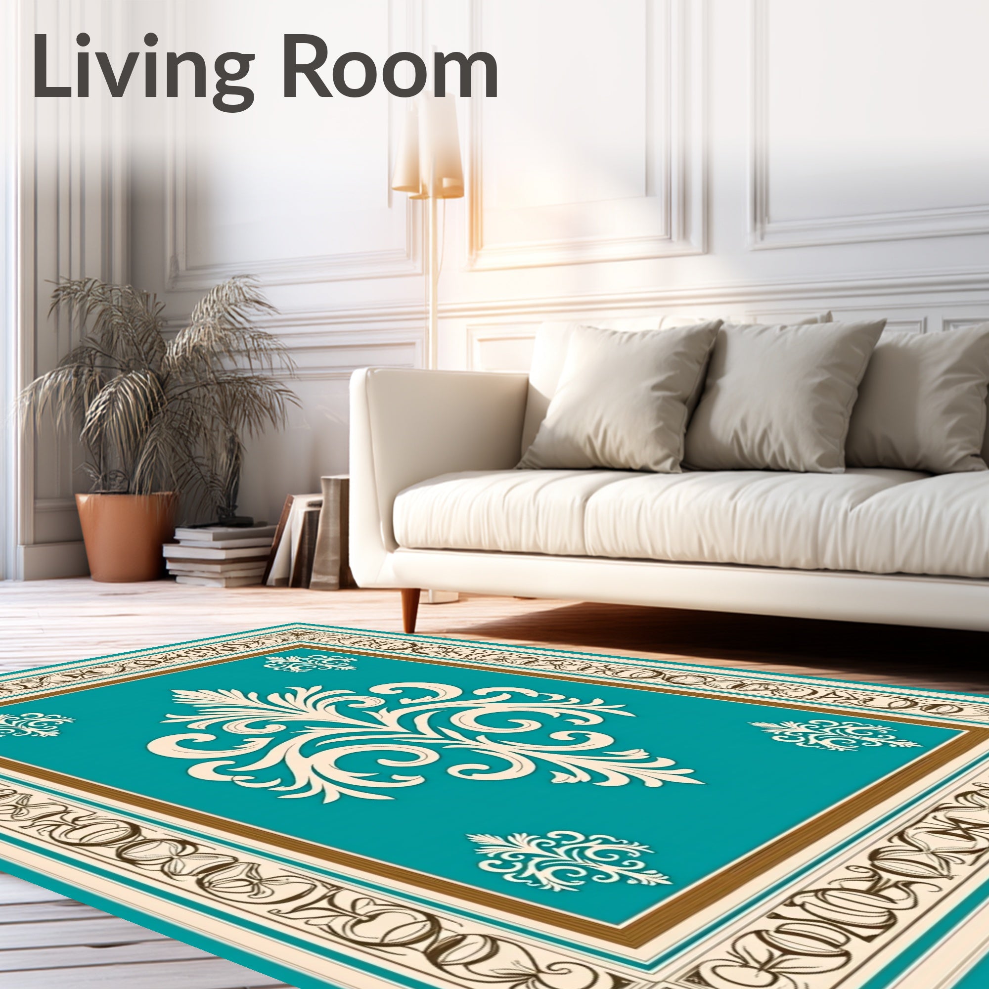 Flatwoven High Traffic Area Rug, Damask Flourish with Elegant Perimeter Accents, Non Slip, Stain Resistant, Washable Area Rugs for Living Room, Bedroom (Beige) Overview: