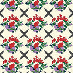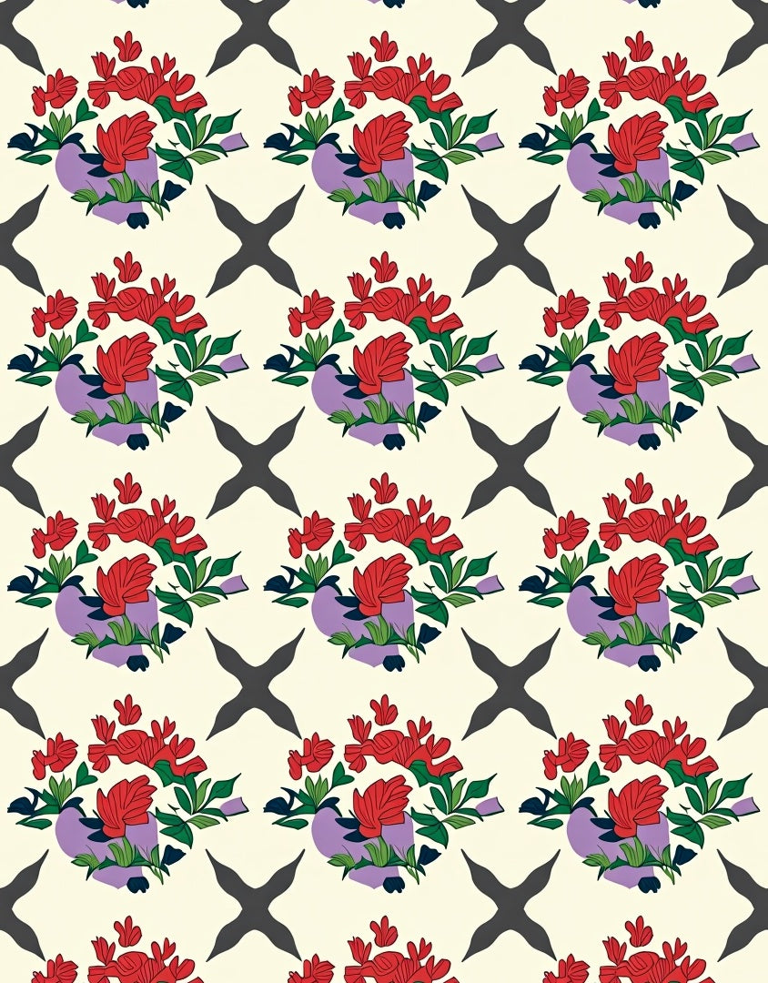 Damask Trellis Overlay with Stylized Floral Sprays and Washed Hues (Red)