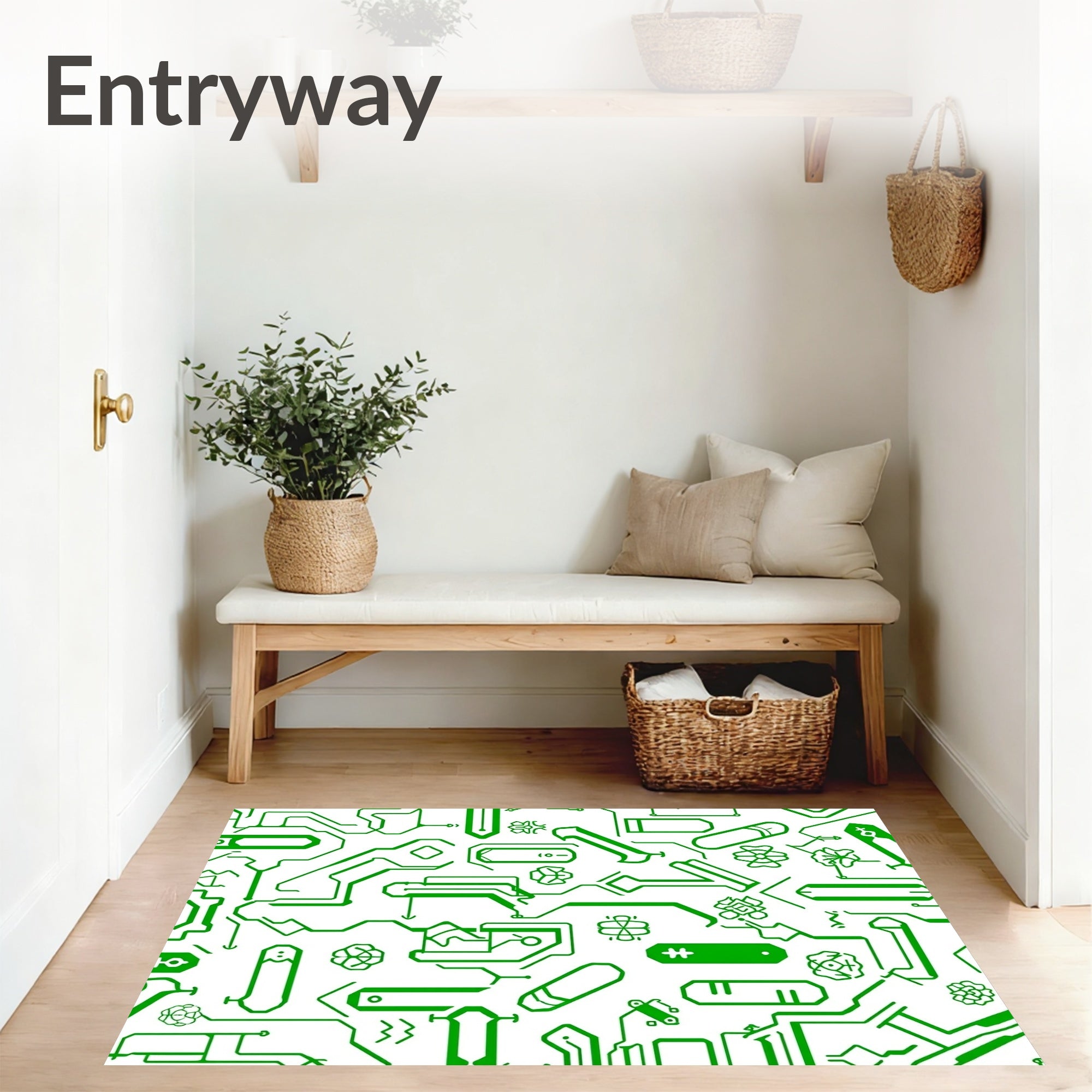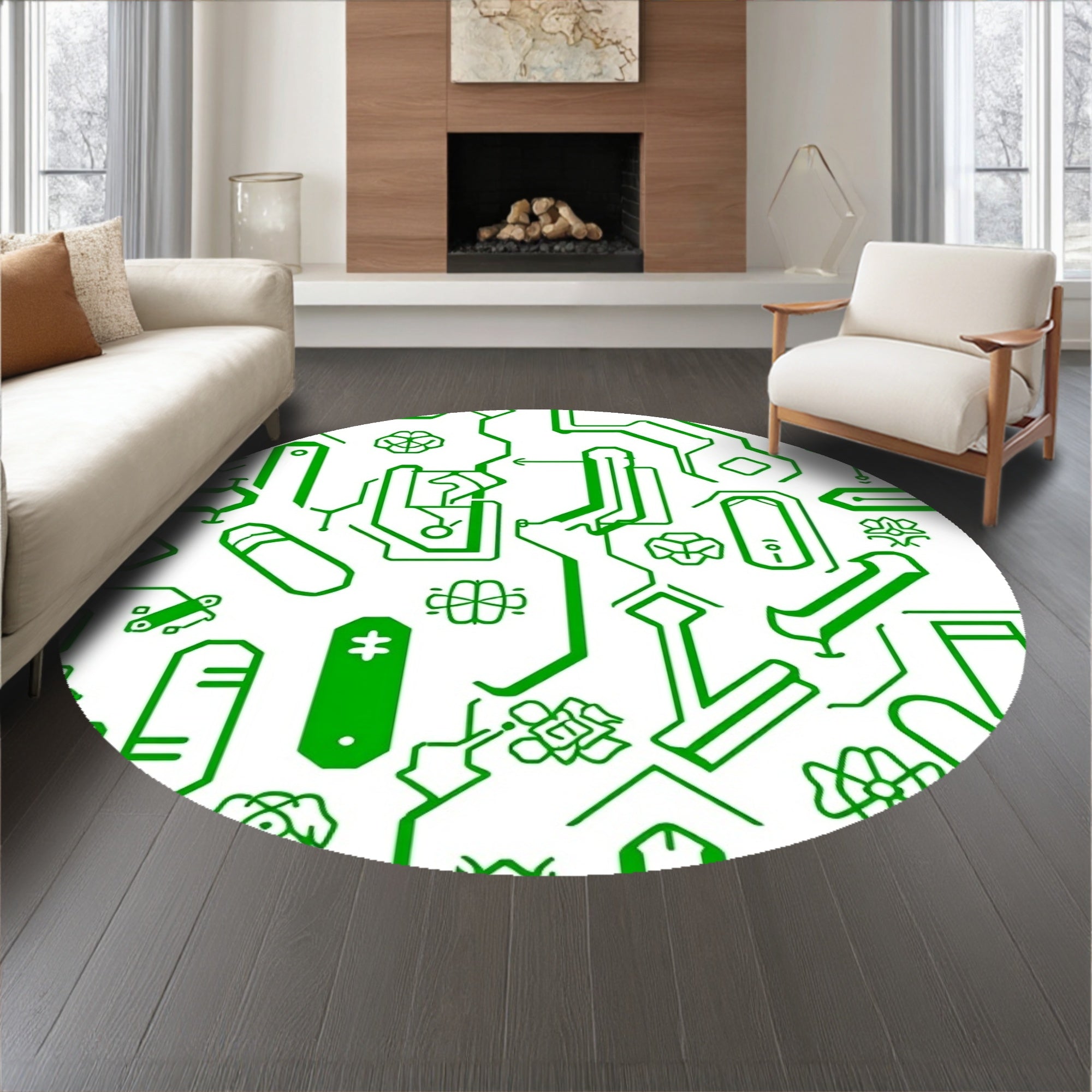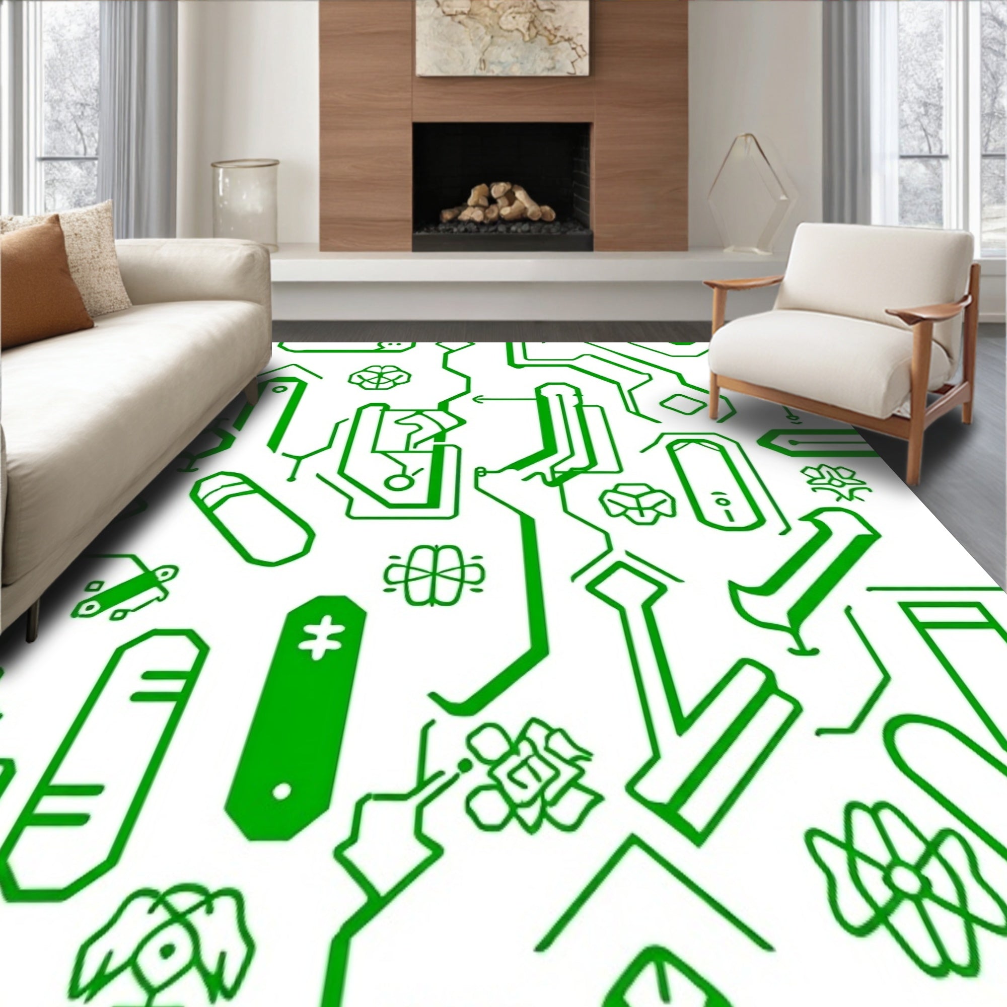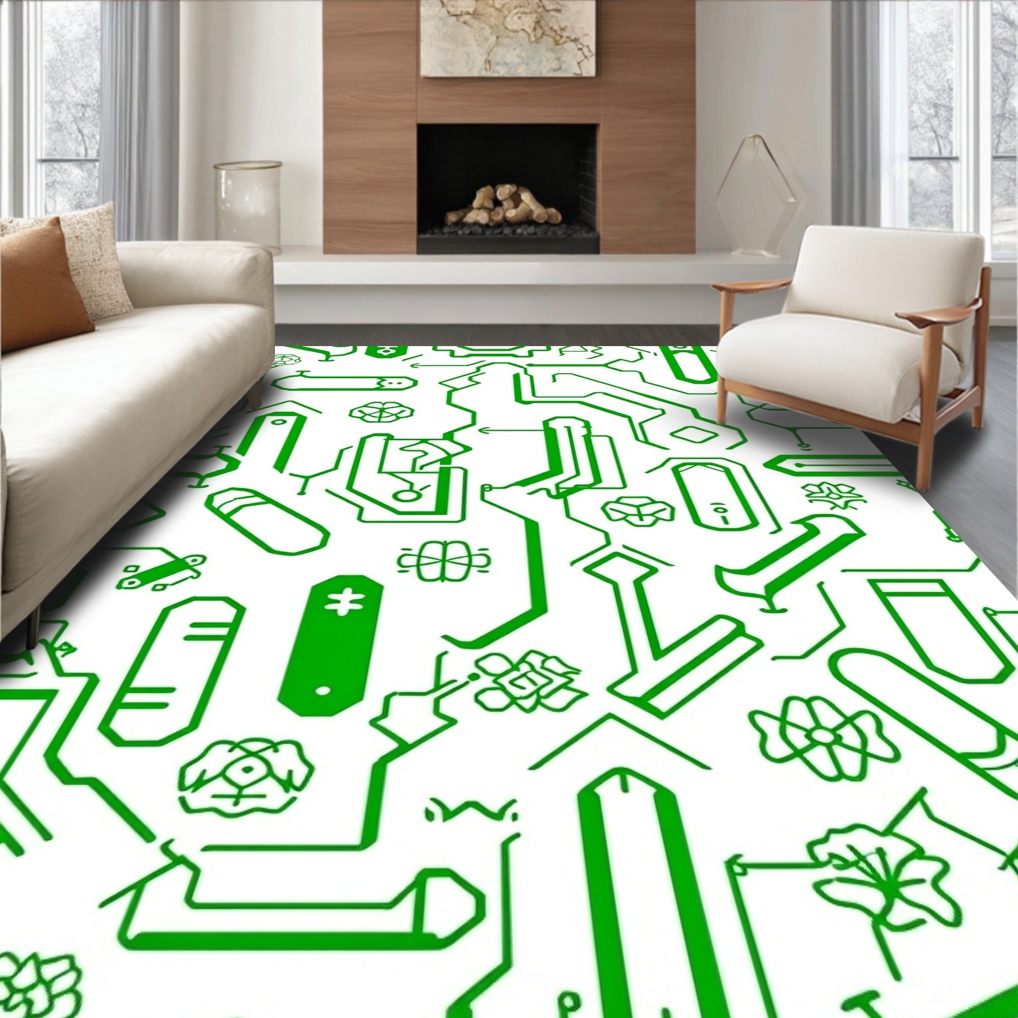 Flatwoven High Traffic Area Rug, Digital Joystick Mosaic with LED Circuit Board Design, Non Slip, Stain Resistant, Washable Area Rugs for Living Room, Bedroom (Green) Overview: